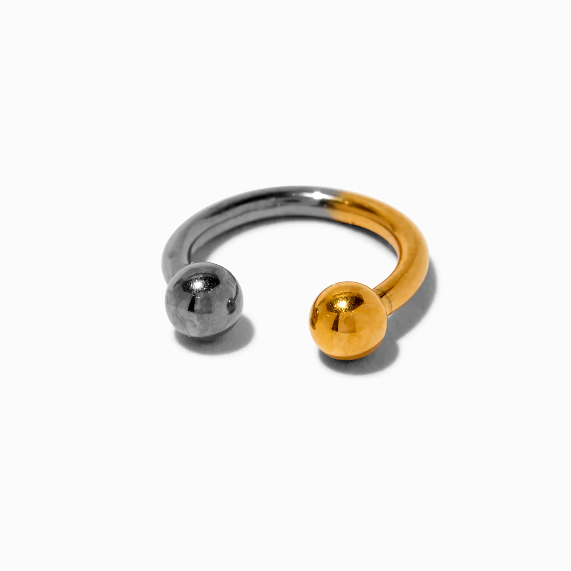 Add to your nose jewellery collection with this two-tone ring for your septum! This septum nose ring features a horseshoe shape with a ball on each end and a mixed metal finish.