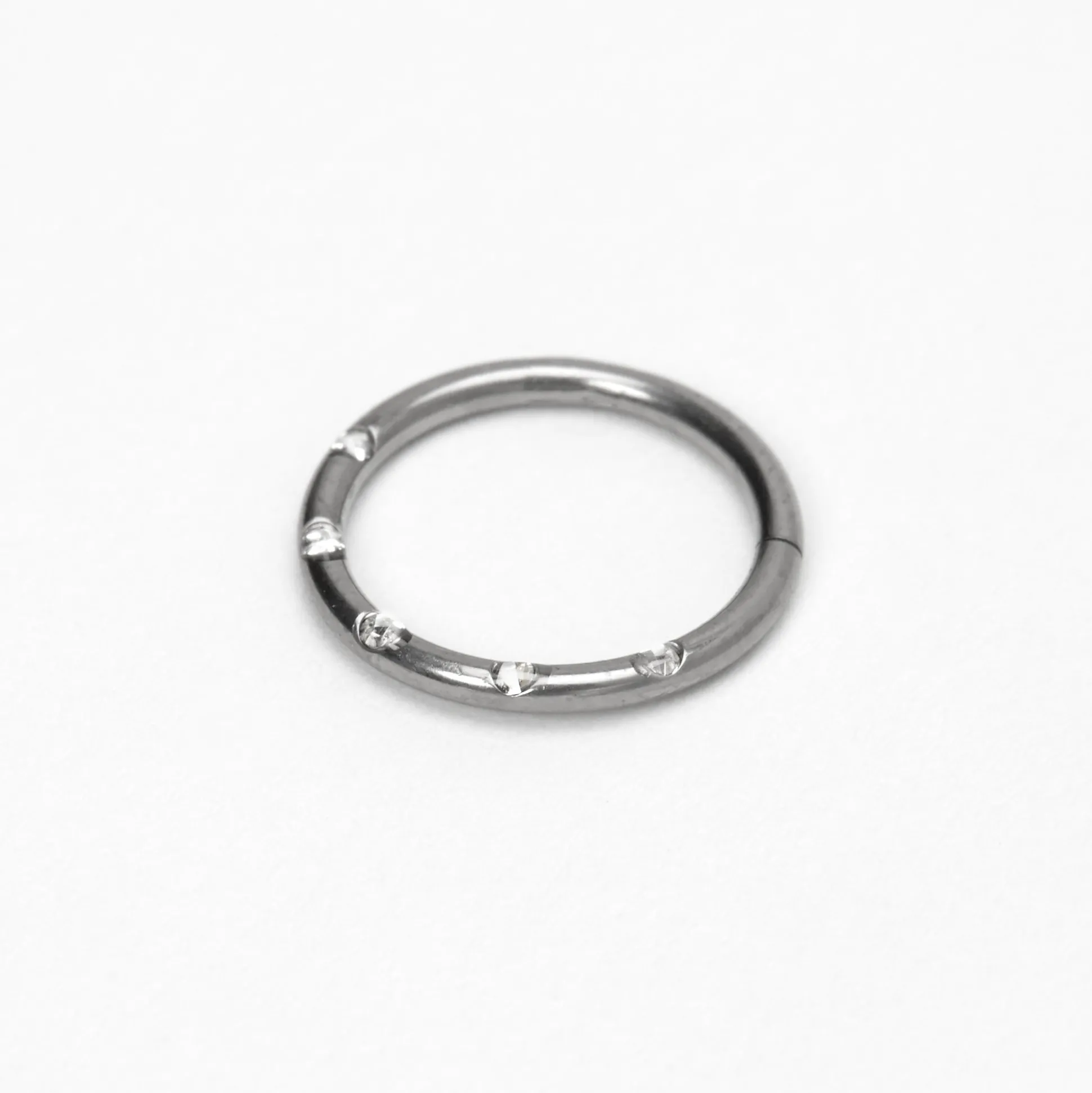 Décore ton oreille du lobe jusqu’en haut grâce à ce superbe anneau de cartilage ! Cet anneau de cartilage couleur titanée est agrémenté de strass incrustés le long de l’anneau.