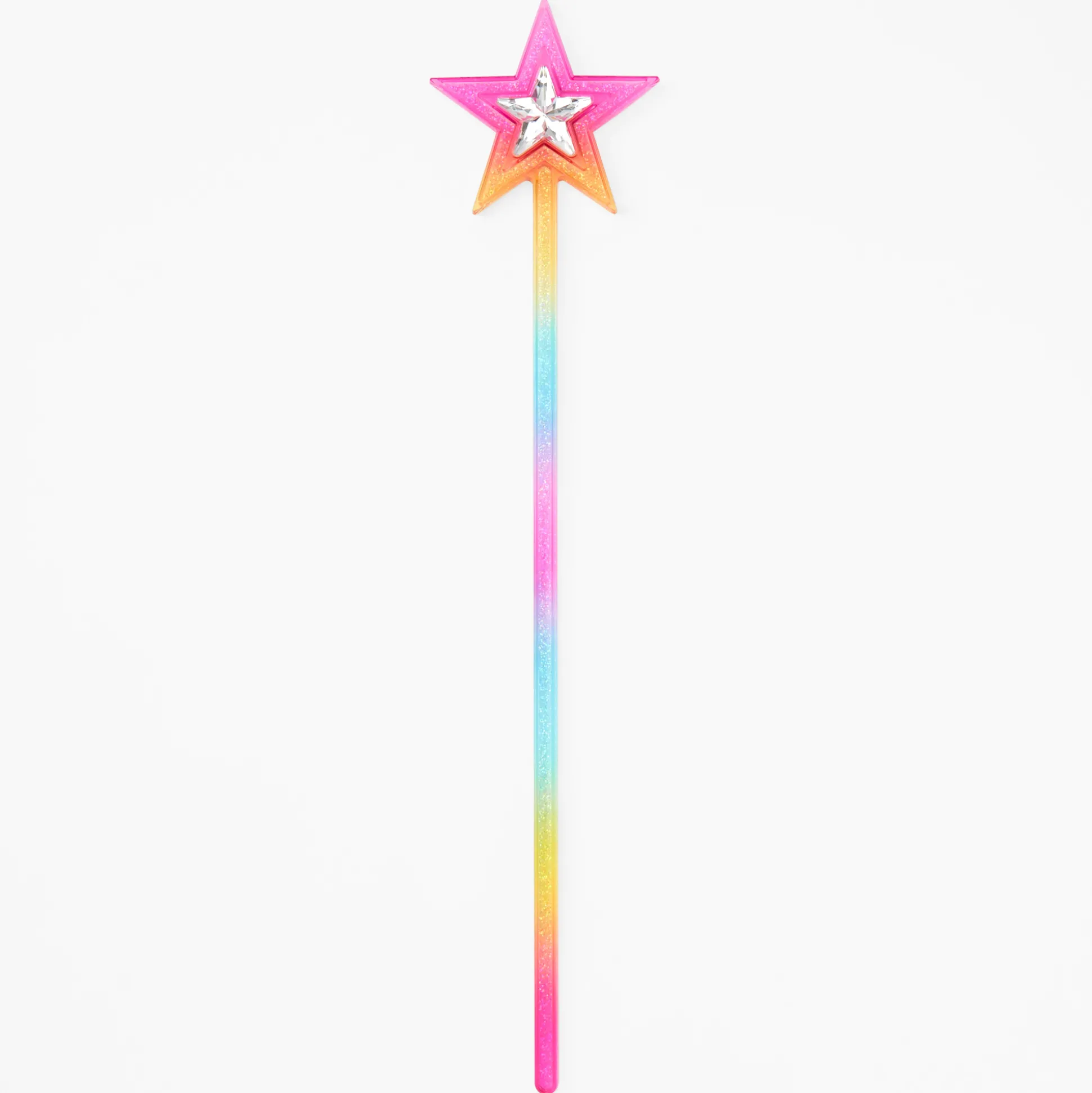Règne en couleur avec cette baguette de princesse arc-en-ciel Claire’s Club ! Transforme-toi en reine ou en princesse en tenant cette baguette pailletée incrustée d’étoiles. Le dégradé naturel de ces couleurs de l’arc-en-ciel rend l’allure de cette baguette royale sensationnelle. Les paillettes claires et irisées rendent cet accessoire encore plus intéressant et glamour, idéal pour une fille qui aime briller de mille feux ! Au centre et sur le dessus trône une étoile en diamant d’imitation pour un look purement royal. Ajoute ce bijou à ta garde-robe fantaisie pour créer tes tenues royales !