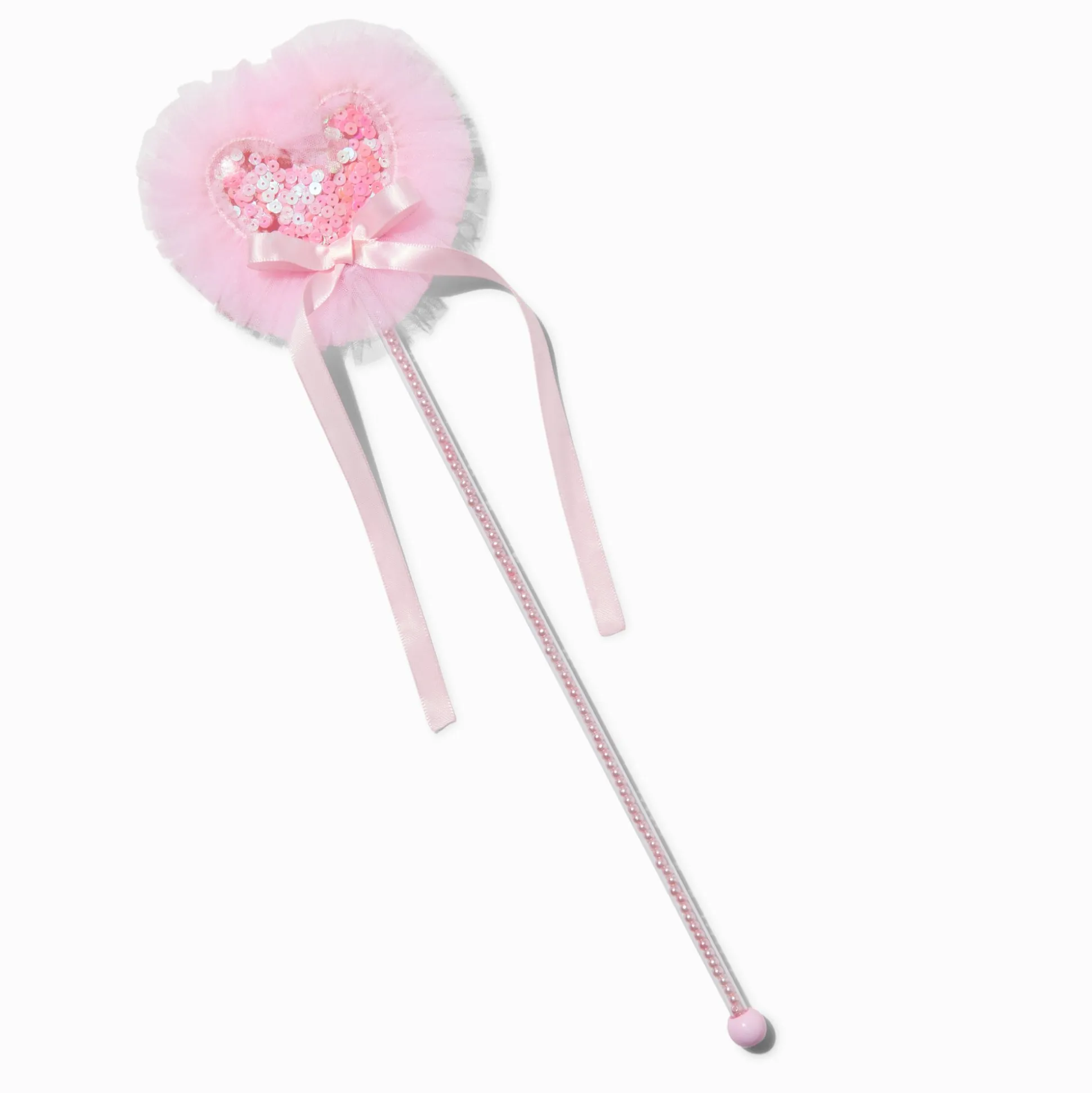 Cette baguette magique est idéale pour compléter son déguisement ! La baguette est rose avec des rubans et une breloque cœur à l’extrémité.