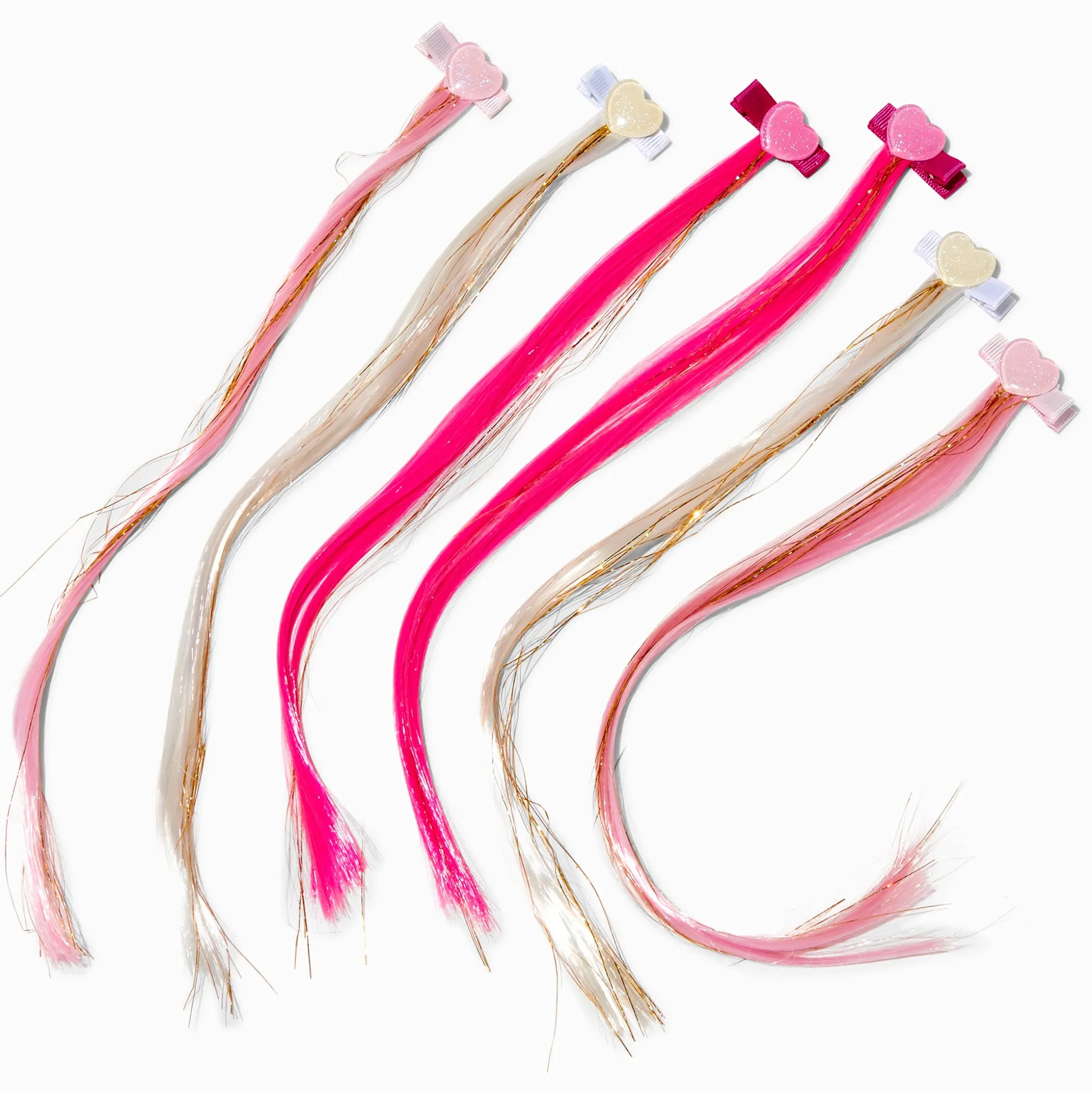 Clipsez des éléments super fun dans ses cheveux avec ce lot de barrettes dotées de cheveux synthétiques. Chaque barrette arbore une breloque étoile avec une mèche de cheveux synthétiques de couleur différente et une barrette en forme de cœur.