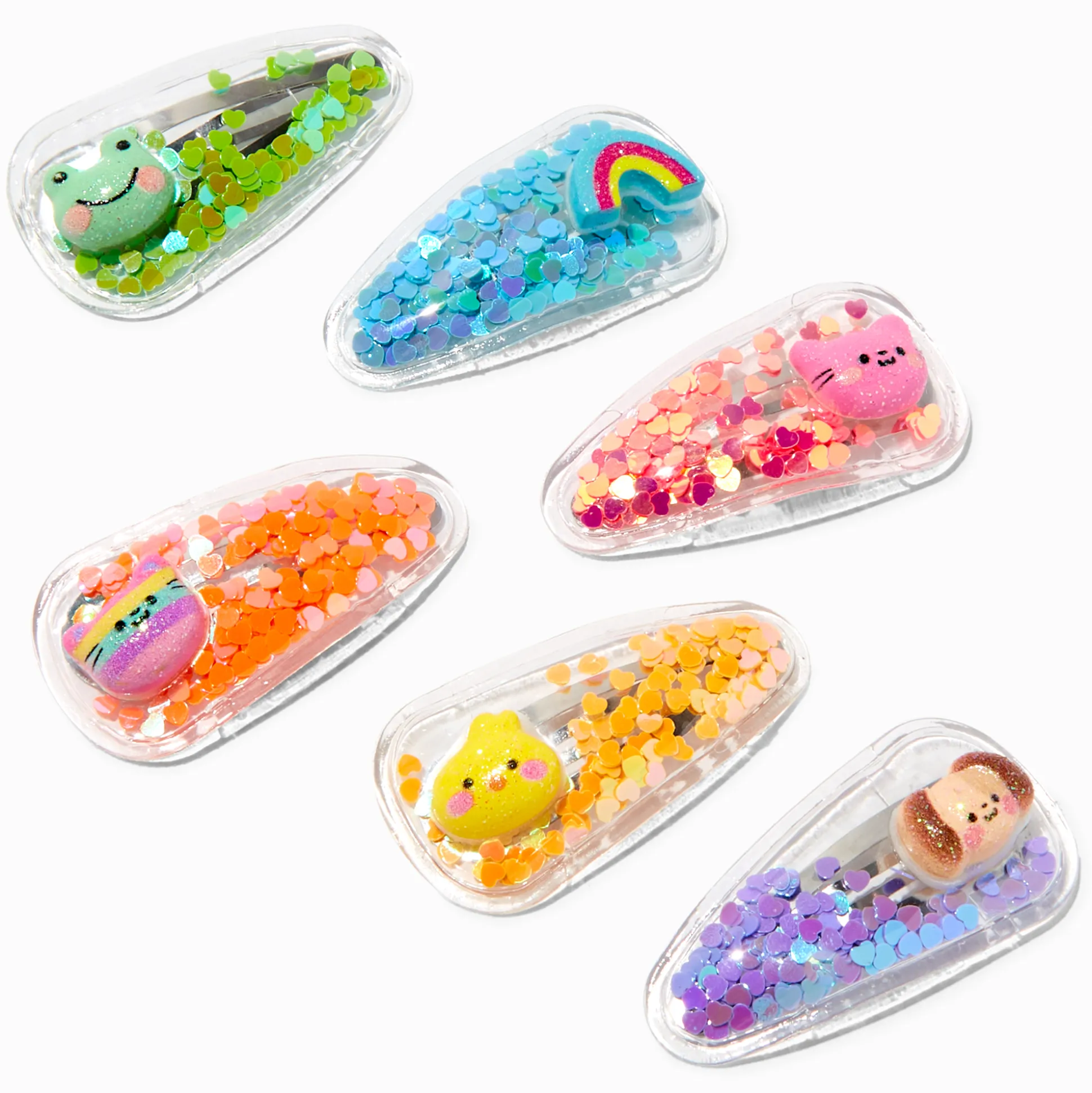 Barrettes clic clac shaker petits animaux à paillettes pastel Claire's Club – Lot de 6