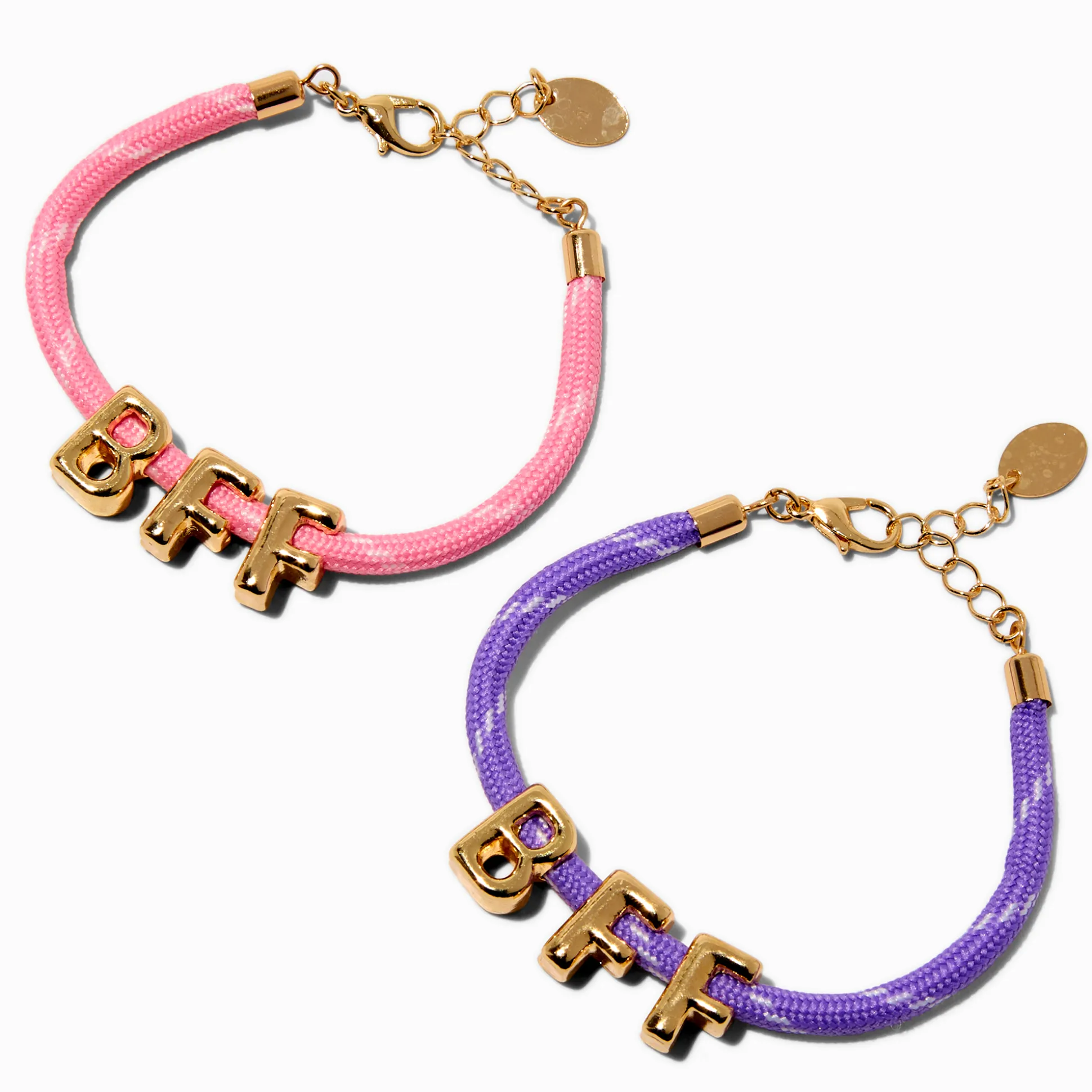 Share a moment with your bestie with this bracelet set. It includes two rope bracelets with gold-tone bubble letters that spell out « BFF ».