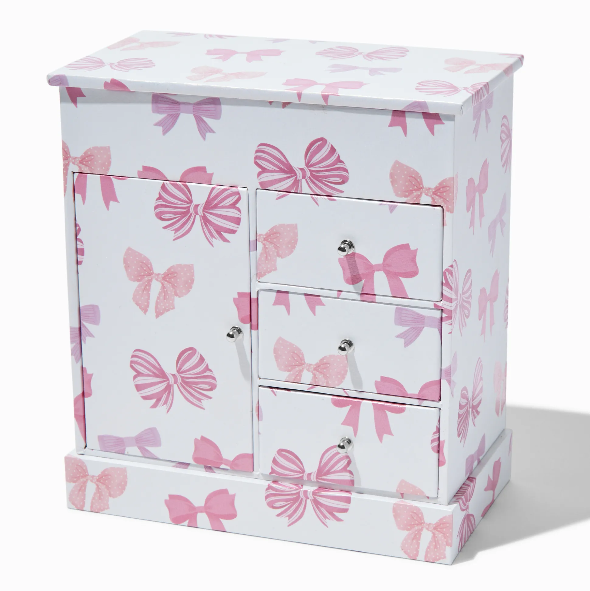 Garde tes bijoux de manière organisée dans cette boîte de rangement inspirée du style coquette. L’extérieur de la boîte arbore un beau motif de nœuds. À l’intérieur, tu trouveras assez de place pour toutes tes affaires.