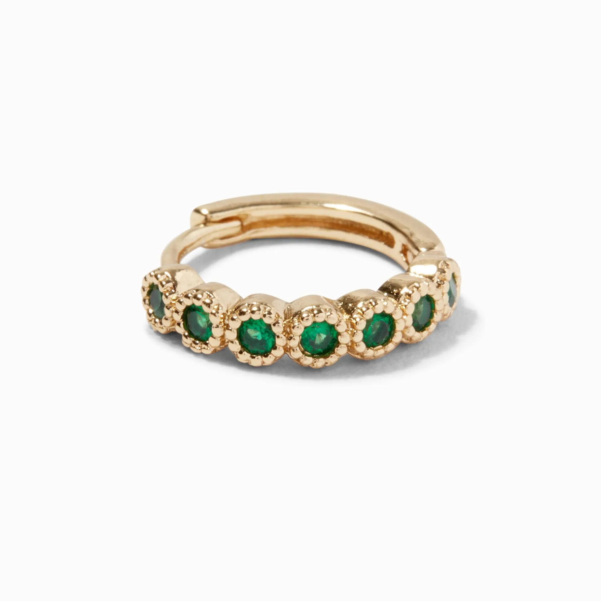 Tout le monde sera vert de jalousie en voyant cette boucle pour piercing de cartilage ornée d’une émeraude d’imitation suspendue à ton oreille. Le bijou arbore un beau design couleur dorée qui est agrémenté d’émeraudes d’imitation en serti clos avec une charnière.