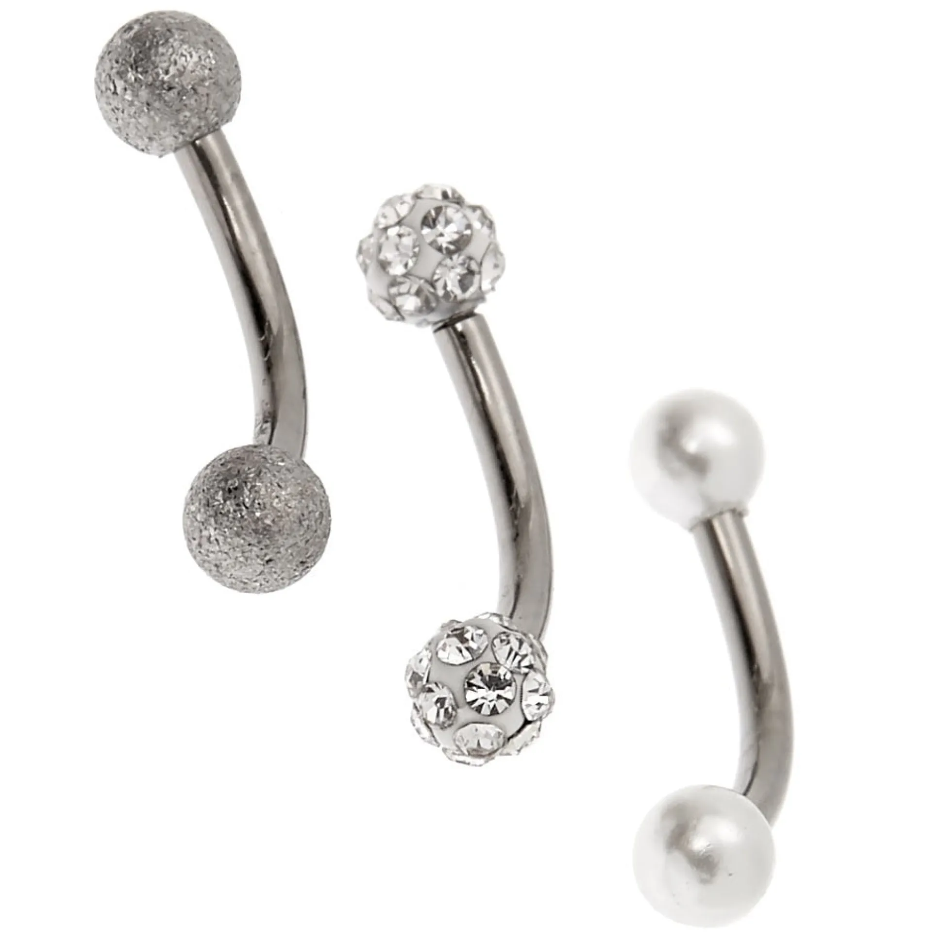 Accessoirise tes oreilles avec des boucles d’oreille scintillantes ! Ce lot contenant 3 boucles d’oreille rook couleur argenté différentes comprend une boucle d’oreille avec une perle d’imitation, une boule de feu en strass, et une boule pailletée.