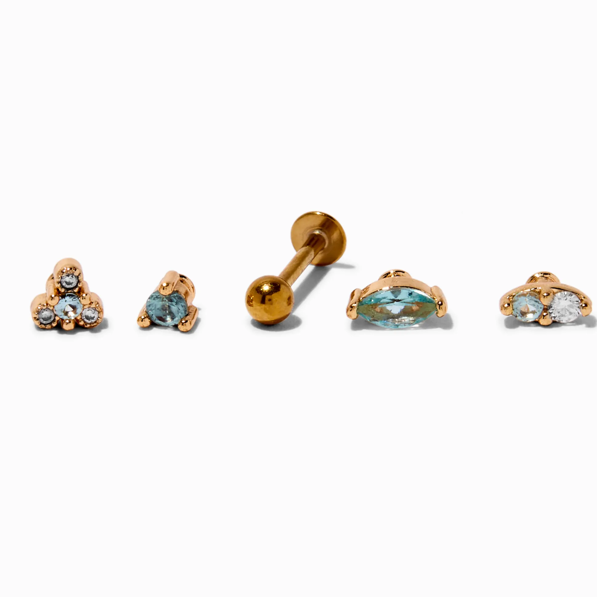 Renouvelle le look de ton piercing de cartilage avec ce lot en acier inoxydable. Ce lot comprend 5 embouts interchangeables différents permettant de créer des looks variés. Les parties interchangeables incluent des détails en zircon cubique vert.