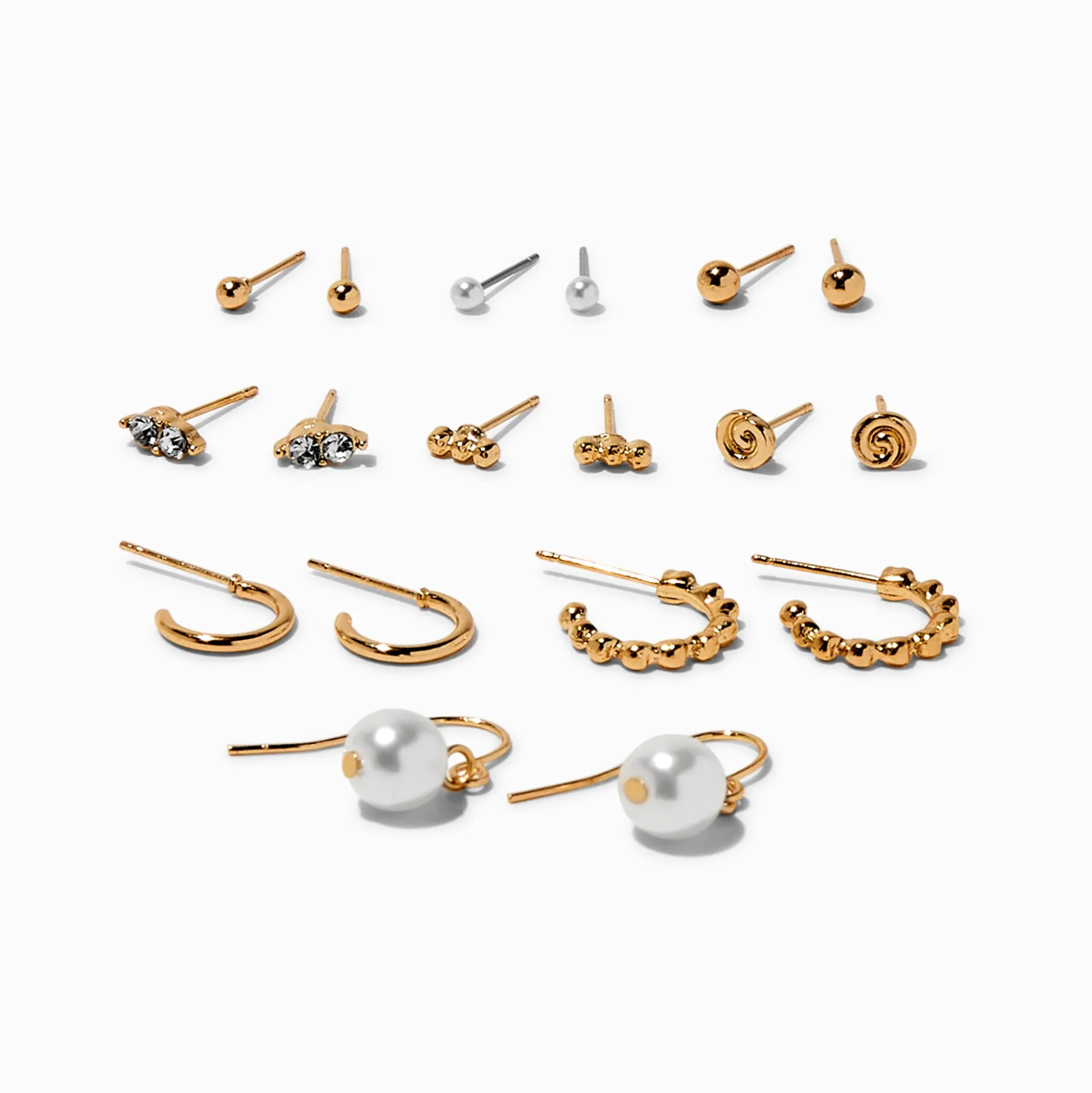 Ce lot de boucles d’oreilles fera de tous tes rêves de bijoux une réalité ! Avec une variété de designs différents, dont des clous variés, de petites créoles et des pendantes, toutes les combinaisons sont possibles. Les options comprennent des perles d’imitation, des tourbillons, et bien plus !