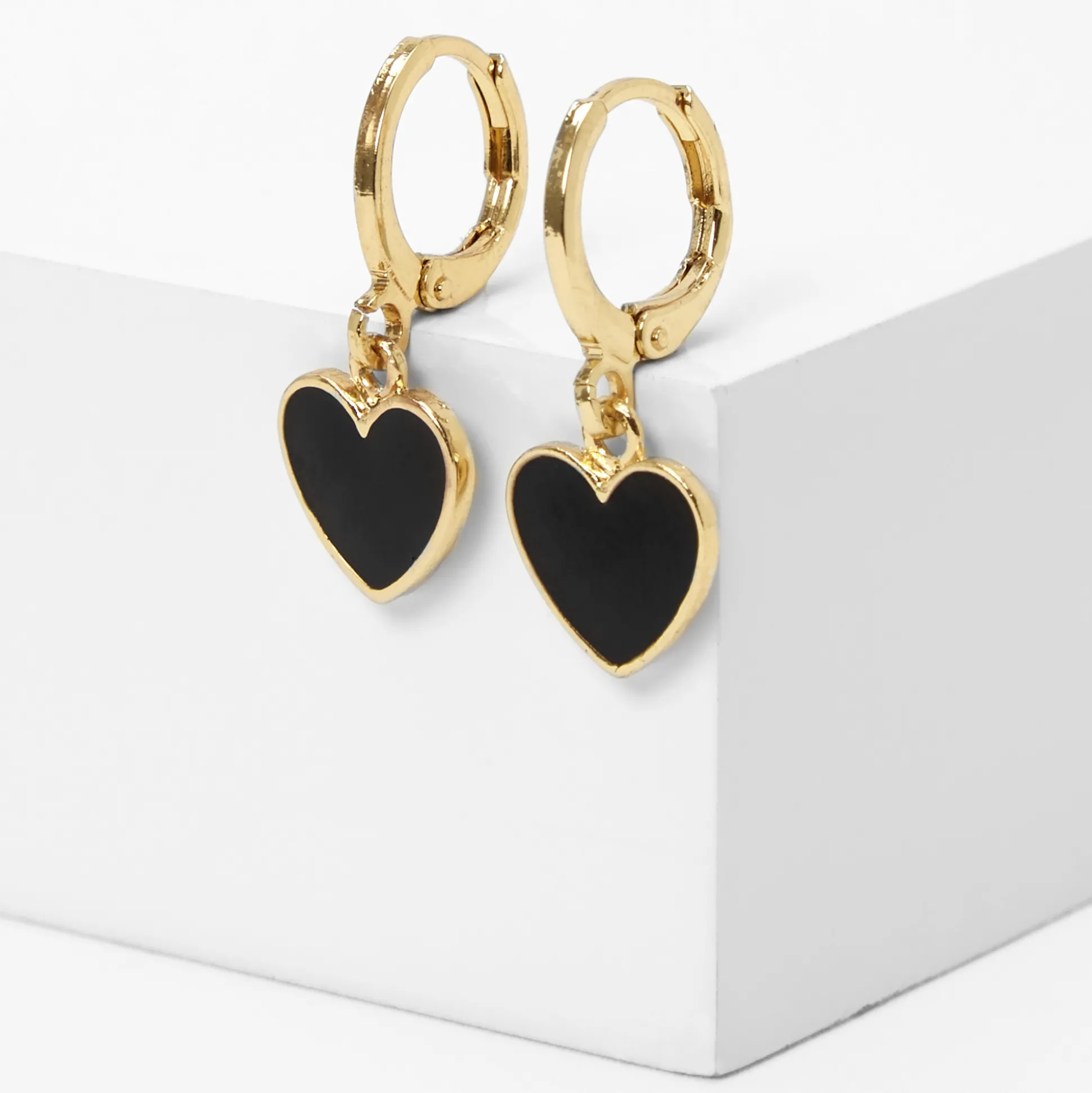 Ajoute une dose de bling bling subtile à tes oreilles avec cette paire de boucles super mignonnes ! Ces boucles d’oreilles huggies couleur dorée sont agrémentées d’un cœur noir et brillant. Parfaites pour compléter tes autres accessoires couleur dorée !