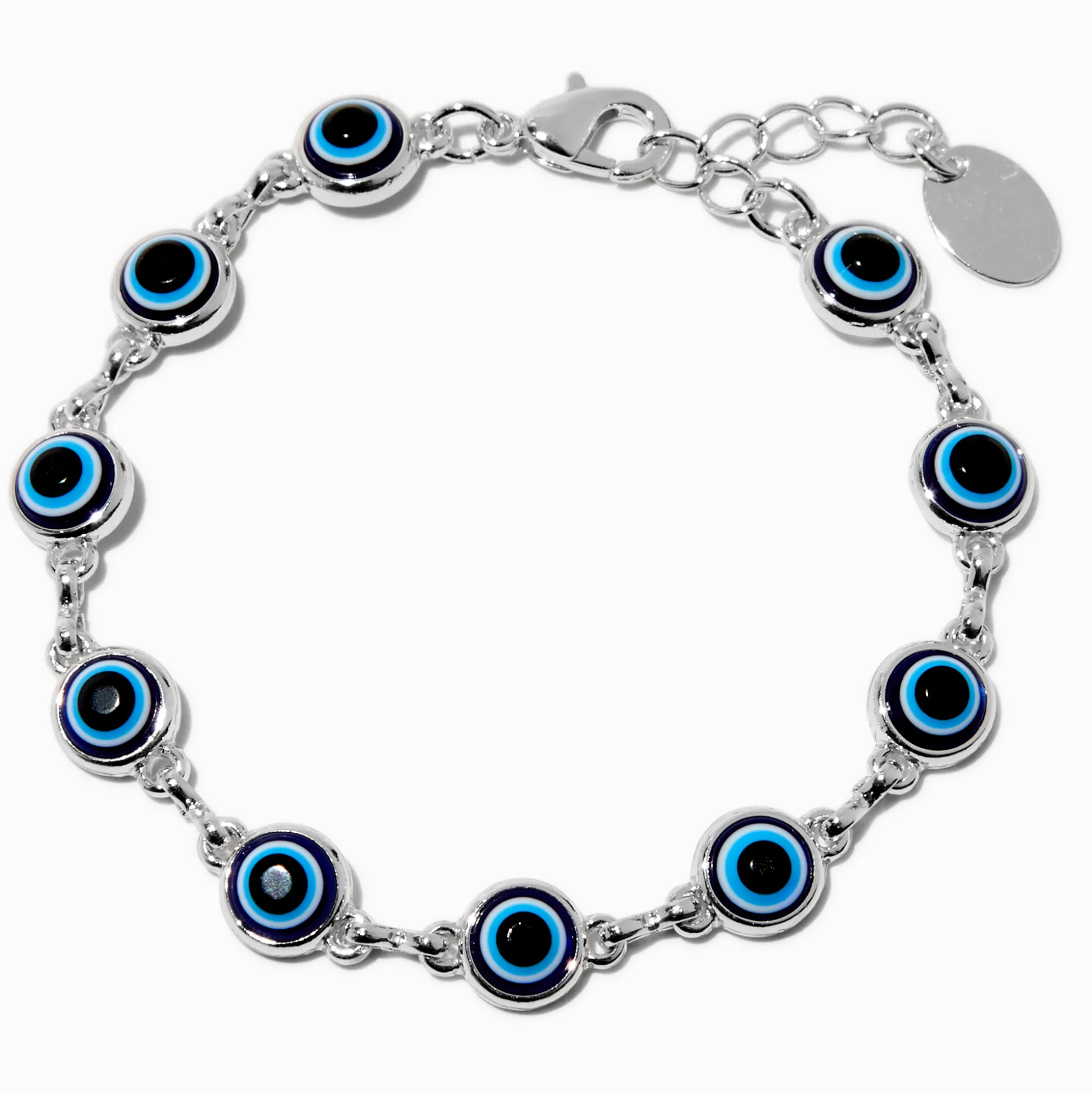 Crée une atmosphère estivale décontractée avec ce bracelet de chaîne couleur argentée. Le bracelet arbore des détails mauvais œil qui te donneront le sentiment qu’on veille sur toi.
