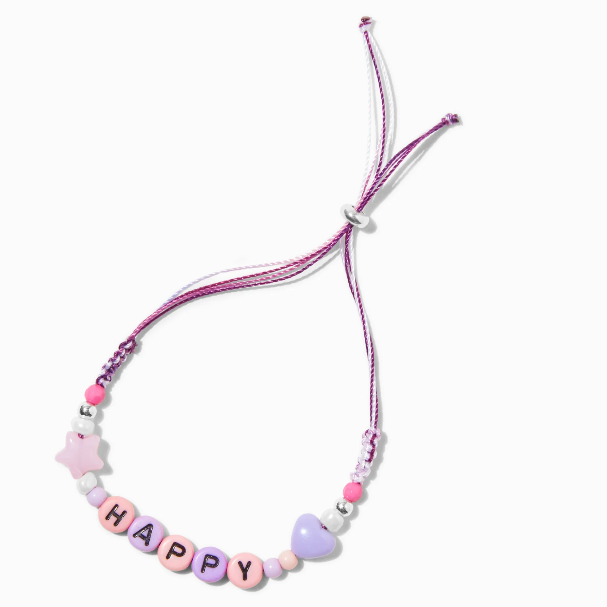 Comment ne pas être happy quand on porte ce bracelet ? Le design couleur argentée arbore des détails tressés ainsi que le mot « Happy » en billes alphabétiques.