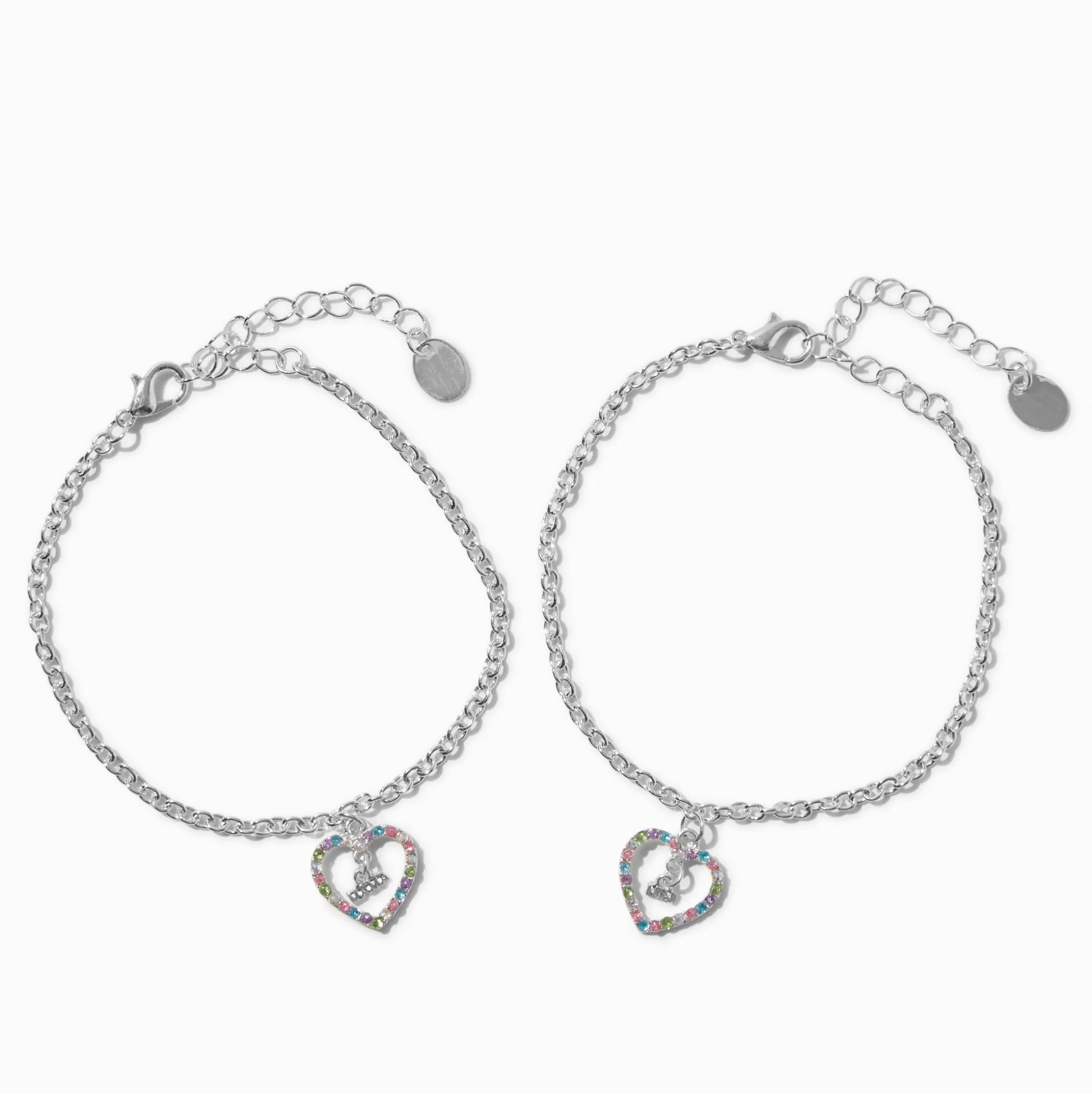 Célèbre ton amour pour ta maman en partageant ce lot de bracelets best friends avec elle. Les bracelets couleur argentée ont chacun un design en forme de cœur qui est recouvert de strass.