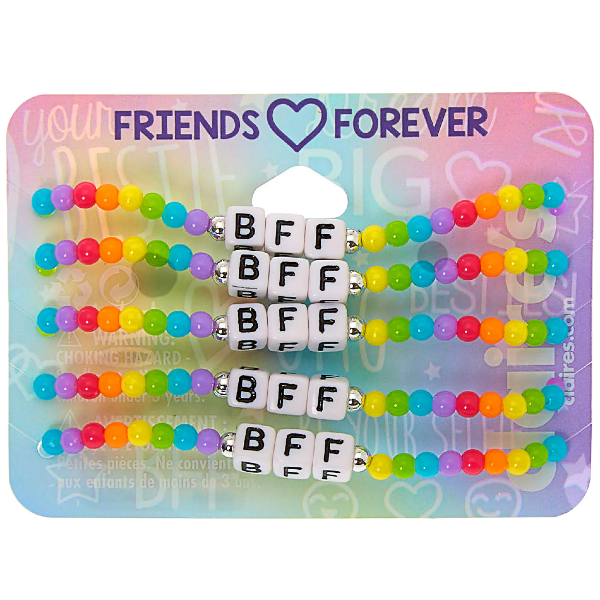 Coordonne ta tenue avec celle de tes besties en partageant ce lot de bracelets super mignons ! Le lot comprend cinq bracelets arc-en-ciel avec des perles d’imitation BFF.