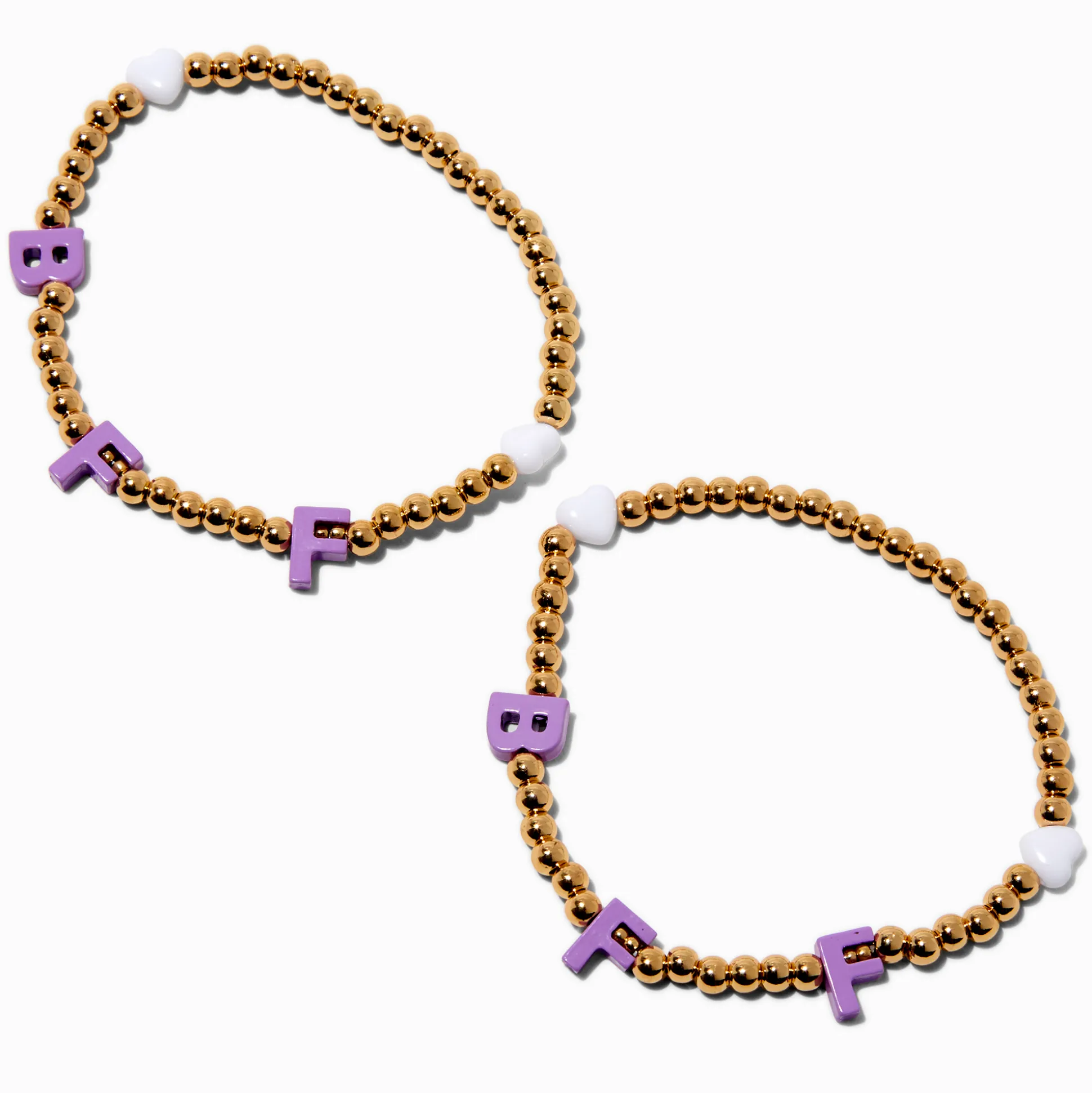 Fais plaisir à ta bestie en partageant l’un de ces bracelets assortis avec elle ! Le lot de deux bracelets élastiques arbore des billes couleur dorée et des billes lettres écrivant « BFF ».