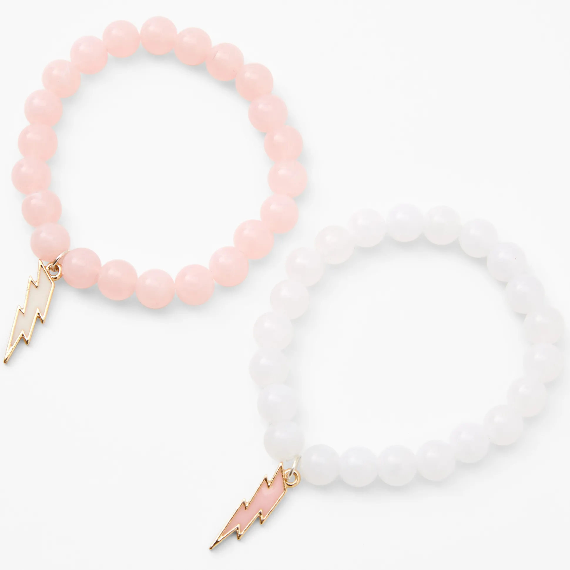 Porte ces deux bracelets ensemble ou séparément, ou partage ce lot avec une amie ! Symbole de puissance, l’éclair qui orne ces bracelets est parfait quand tu veux faire une super première impression autour de toi. Chaque bracelet est élastique et possède une breloque éclair délicate.