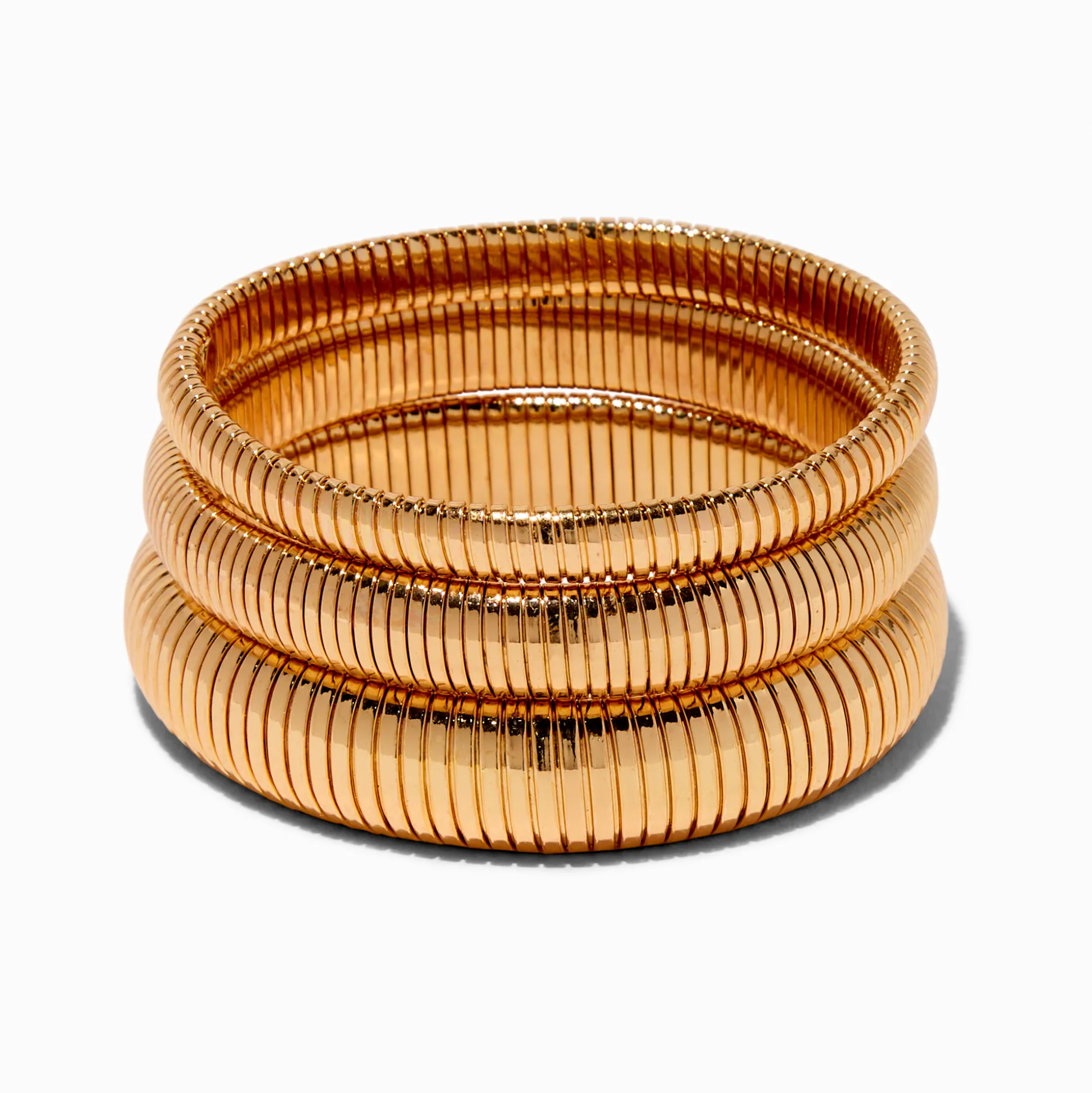 Fais le plein de style avec ce lot de trois bracelets. Le lot couleur dorée comprend trois bracelets fins bangle de tailles graduelles.