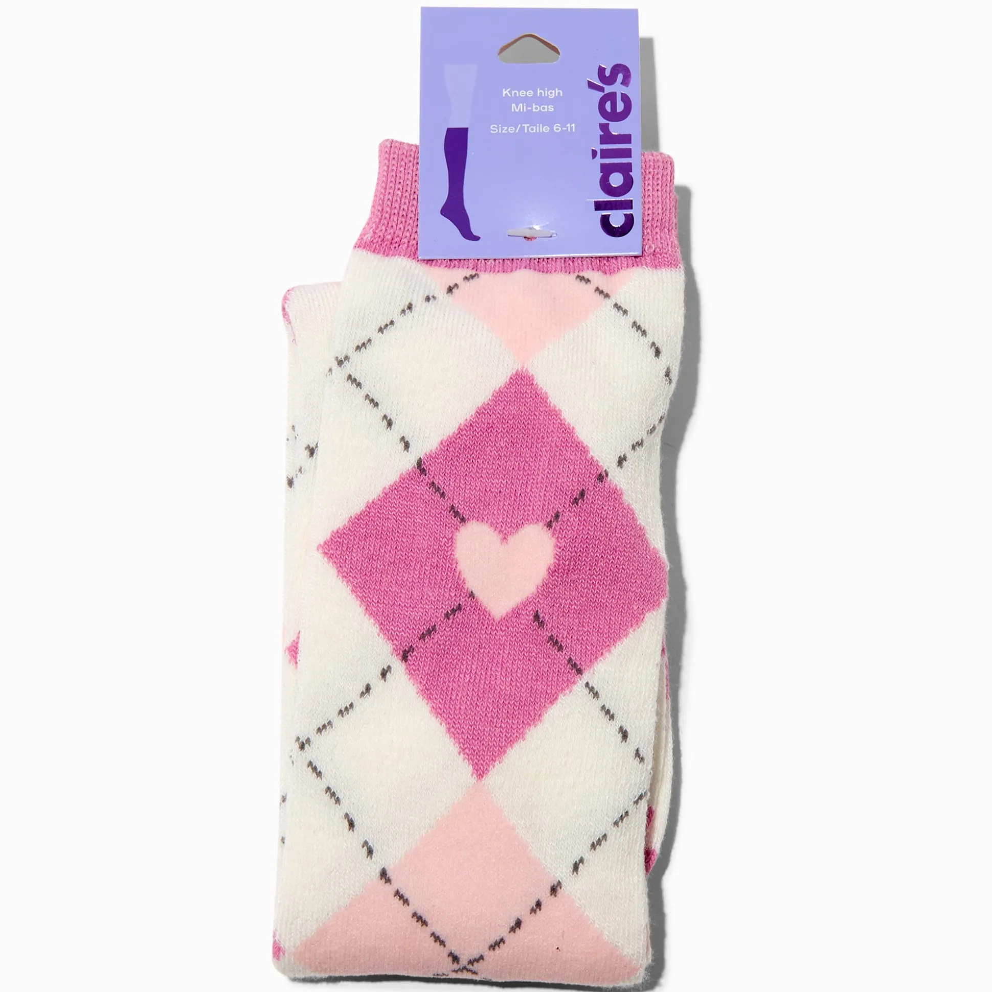 Chaussettes montantes à motif argyle cœur roses – 1 paire