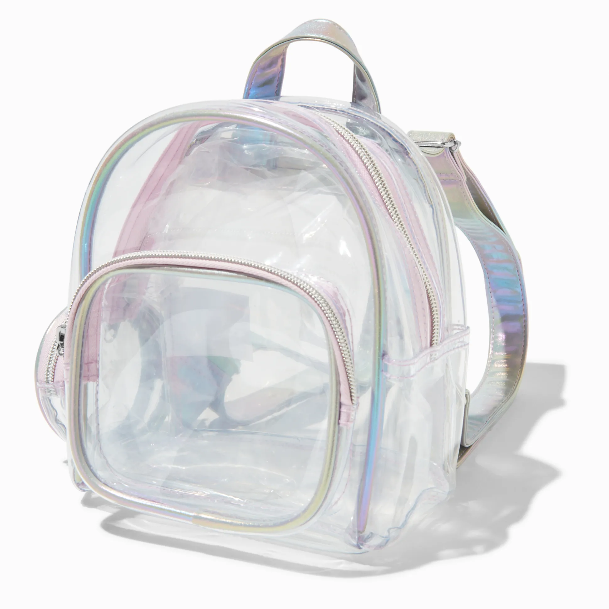 With a clear backpack, you’ll always be able to find what you need during your busy school day… and your homework won’t be forgotten! This roomy backpack features iridescent edging. There’s a roomy main compartment, a smaller front pocket, and small open pockets on the sides. The shoulder straps adjust easily for comfort.