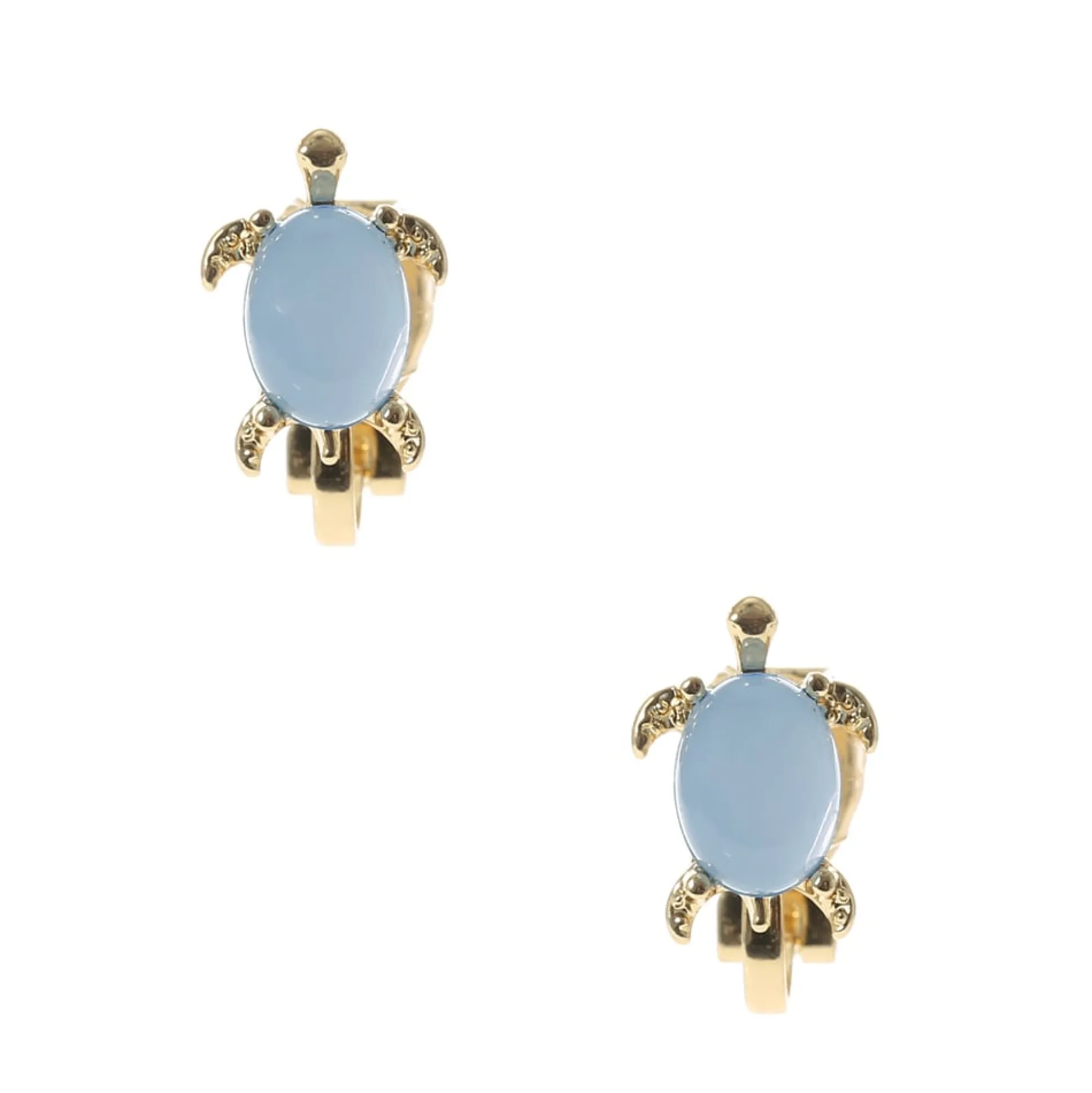 Cette paire de pendantes à clip super mignonne est faite pour les oreilles non percées et elles ont la forme d’une tortue décorée avec une jolie pierre en opale d’imitation bleu clair, représentant sa carapace.