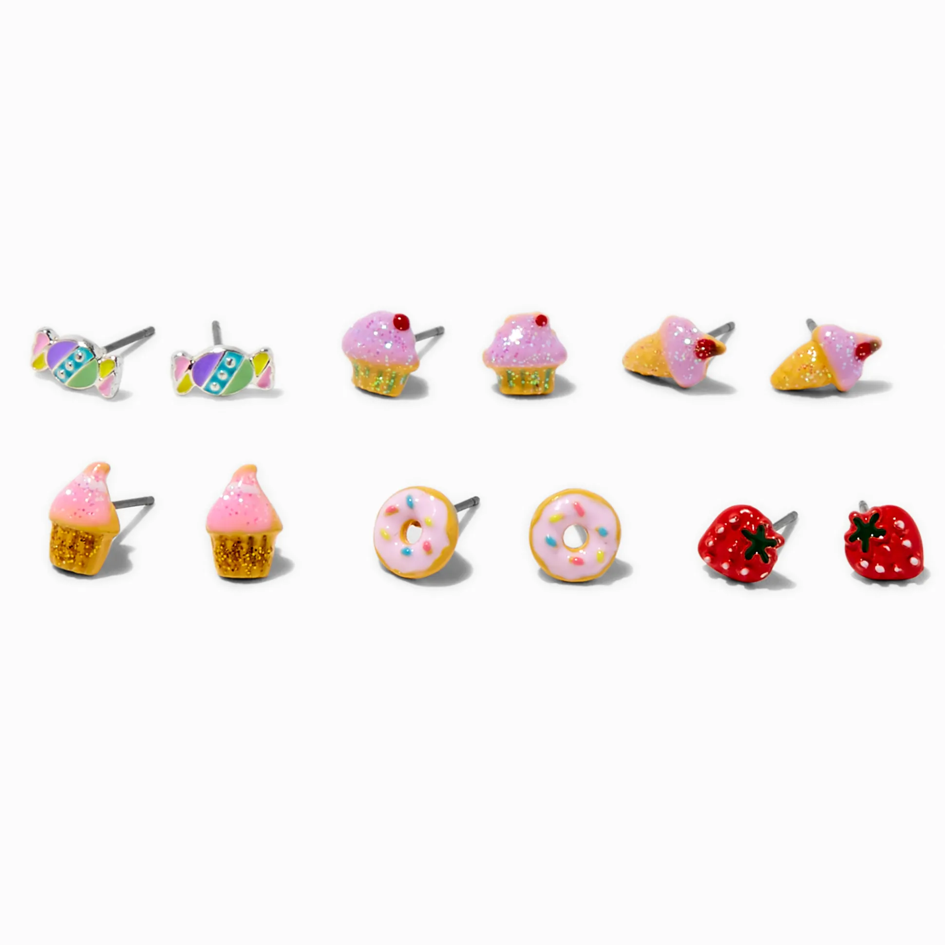 Ce lot de boucles d’oreilles est parfait pour les amatrices de dessert. Les six paires comprennent des bonbons pailletés, des cupcakes, des donuts, des fraises et des cornets de glace.
