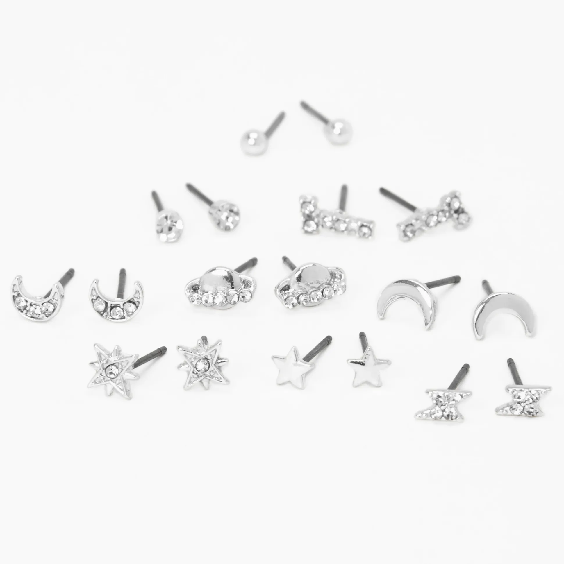Ce lot de boucles d’oreilles super fun est intergalactique et cool ! Il y a assez de paires pour que tu puisses porter un look différent chaque jour de la semaine, et tu en auras même deux de plus. Cette collection sur le thème de l’espace comprend des lunes, des étoiles, des planètes, des perles d’imitation, et bien plus encore.