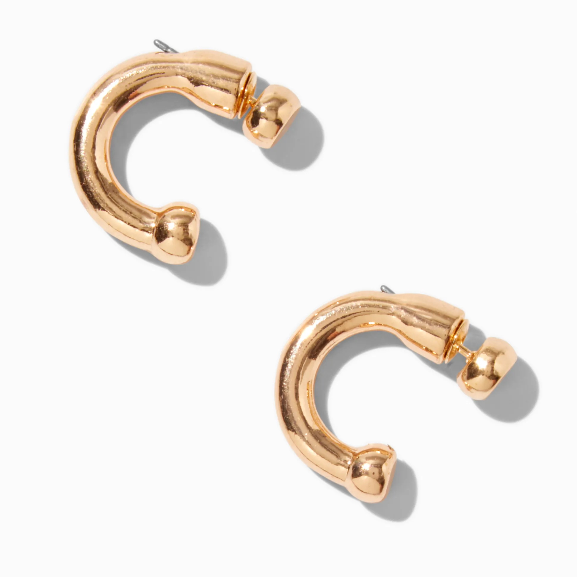 Sois toi et sois au top avec ces clous d’oreilles devant-derrière au look super frais. Les designs couleur dorée arborent une forme de demi-créole qui donne de la dimension à ton look.
