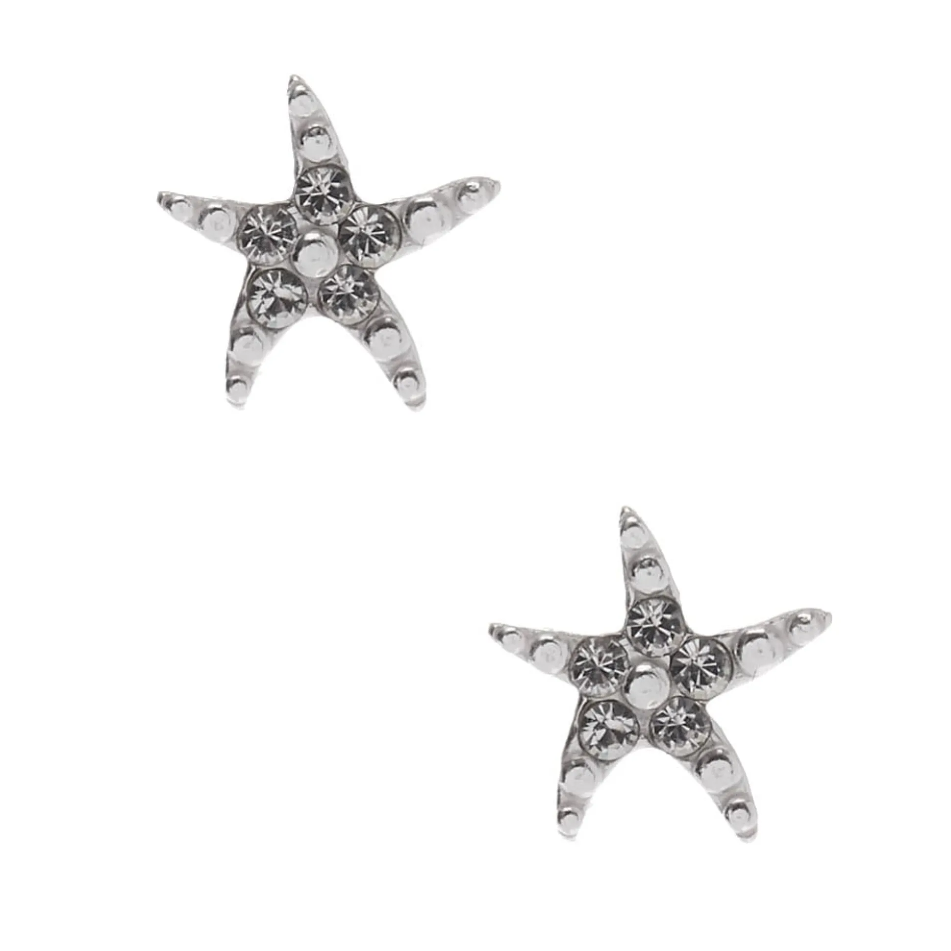 Ajoute des ondes de plage à tes oreilles grâce à cette paire de clous. Ces boucles d’oreilles en forme d’étoile de mer en argent sont rehaussées de mini strass.