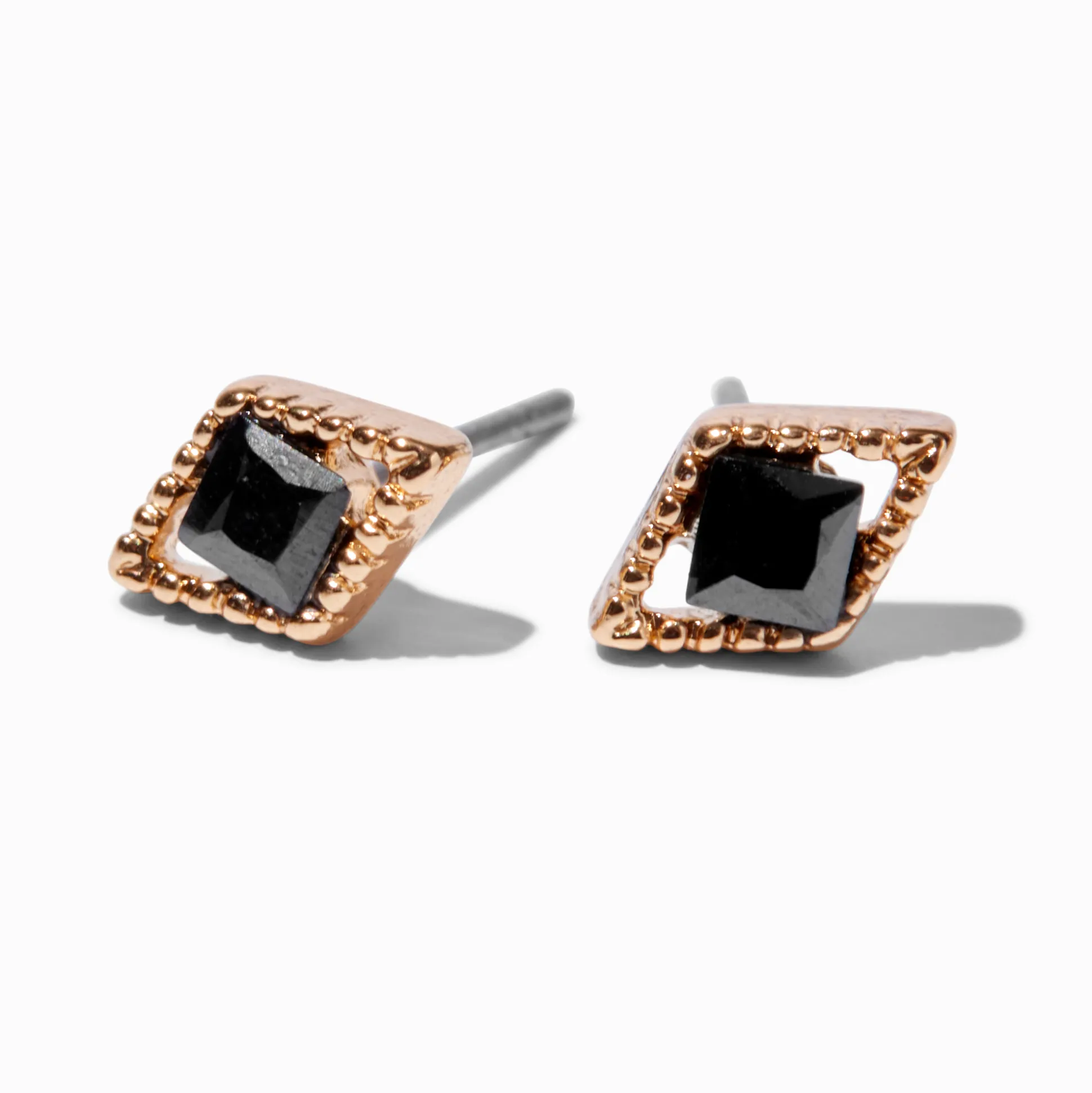 Ajoute un style géométrique à tes oreilles avec ces clous couleur dorée. Les designs en forme de diamant sont dotés d’un détail en zircon cubique noir en forme de diamant.