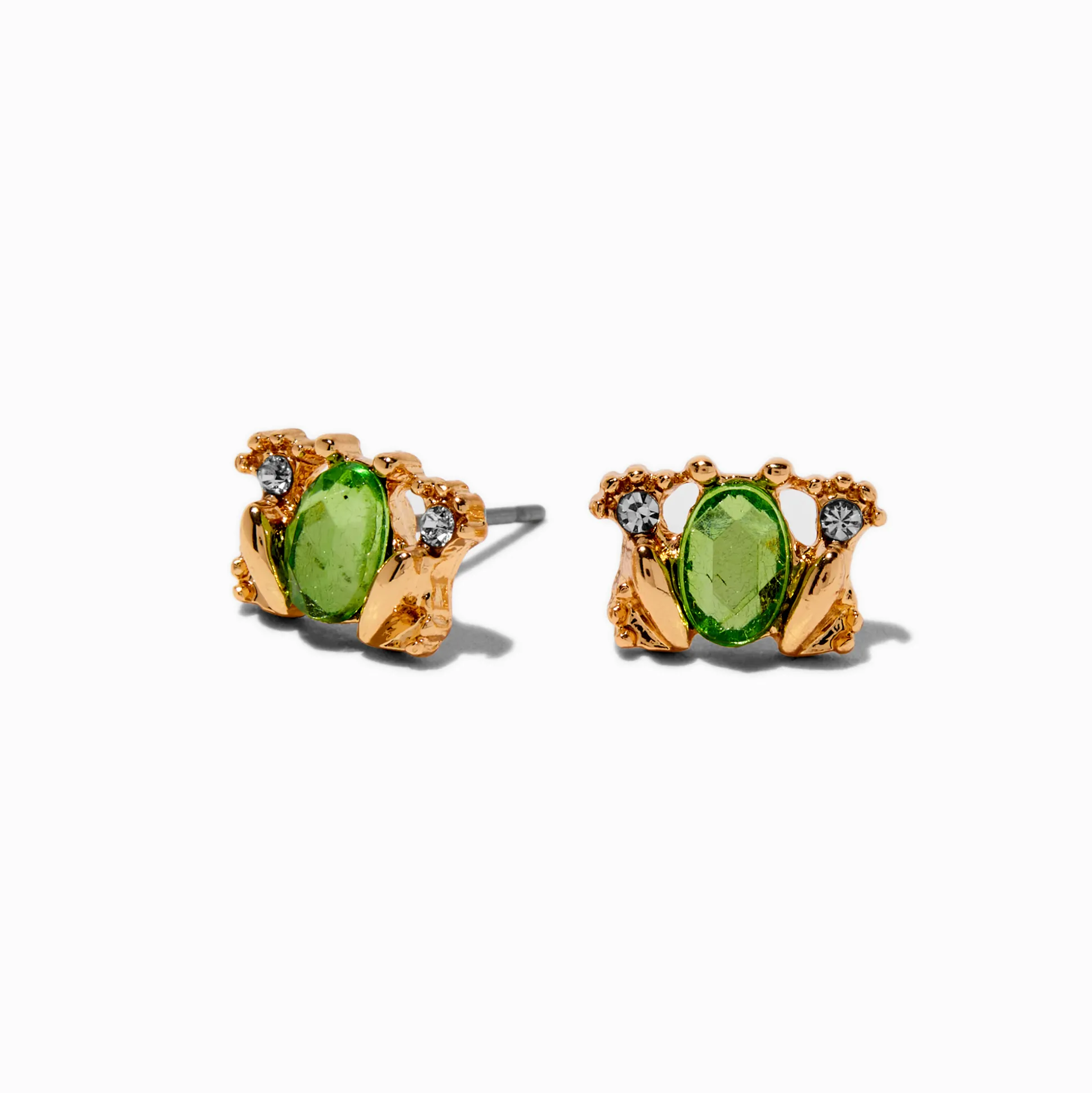 Difficile de savoir si ces grenouilles sont des princes, mais ils sont tout de même adorables et décoreront parfaitement ta tenue du jour. Les grenouilles couleur dorée sont recouvertes de strass verts et transparents.