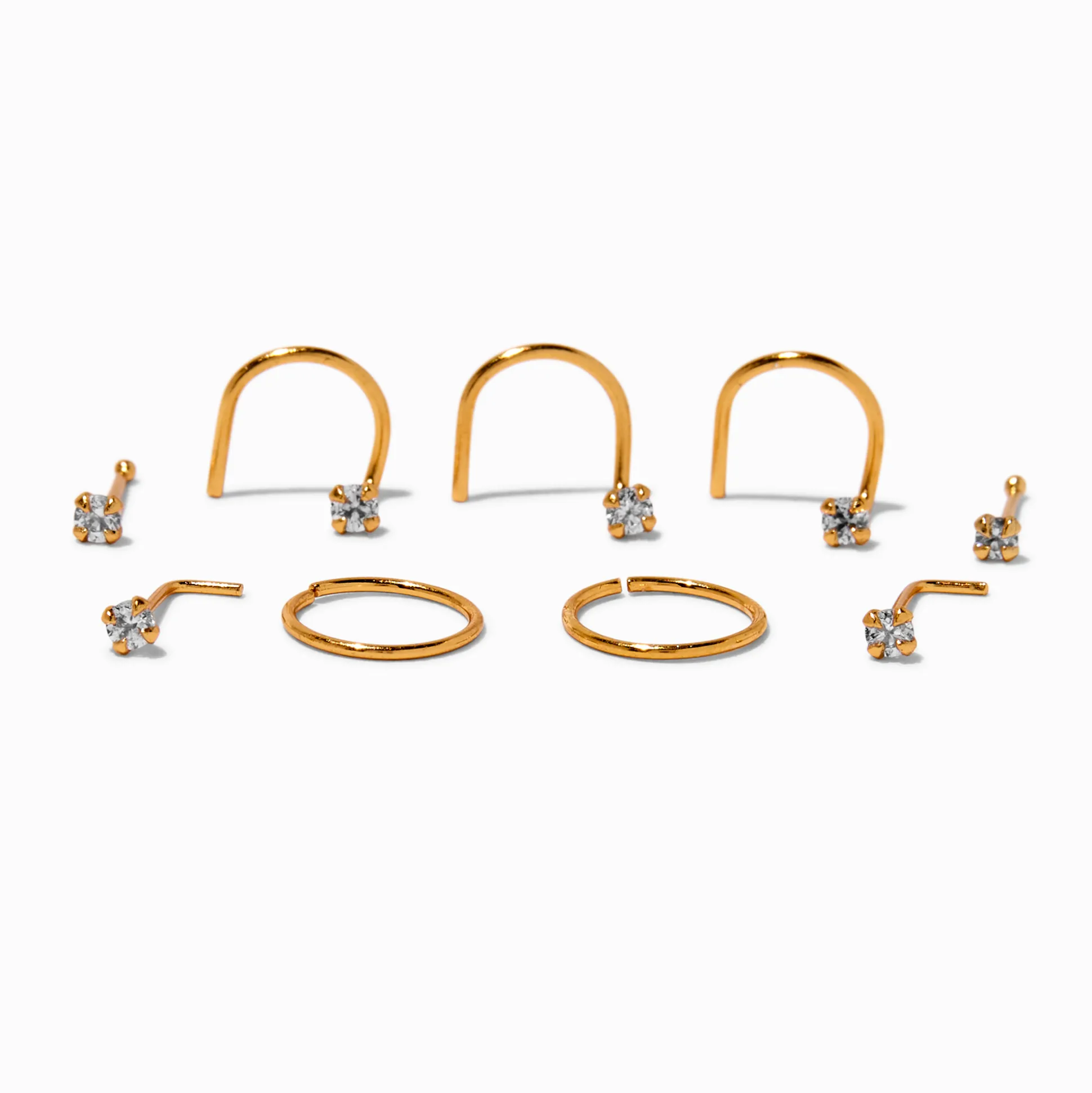 Ces clous de nez de 0,6 mm t’offrent une multitude de choix. Les options comprennent des clous et des créoles avec des sphères couleur dorée ou des zircons cubiques en serti clos.