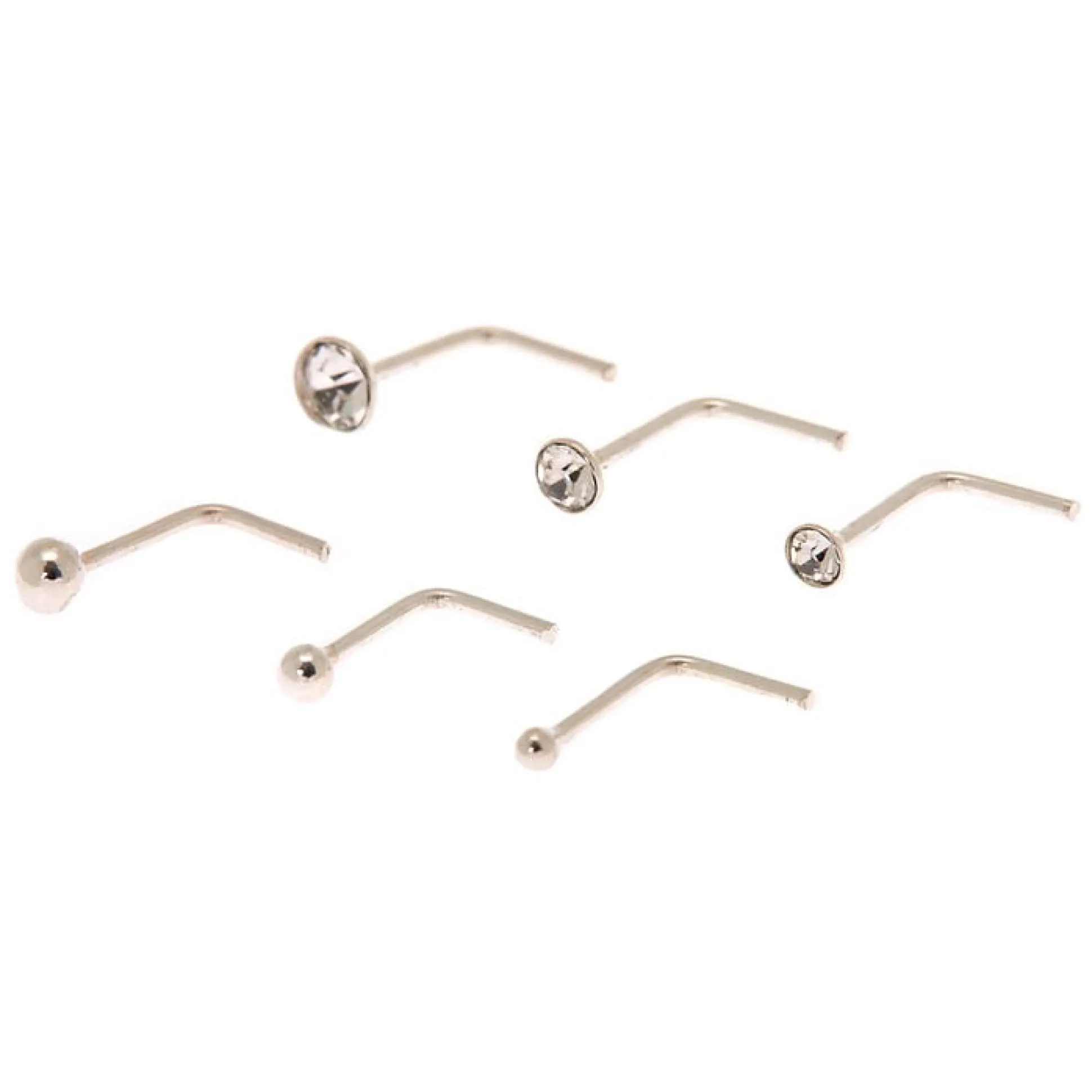 Ajoute une jolie touche couleur argentée à ta collection de bijoux de nez ! Ce lot est composé de clous couleur argentée avec un mélange gradué de strass et de boules. Opte pour un clou de taille plus petite pour une touche subtile ou ajoute un clou plus imposant afin de souligner ton look.