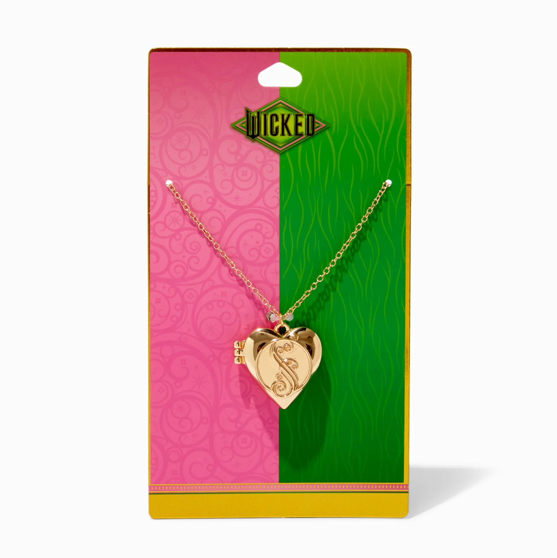 Garde une petite photo ou un souvenir, comme ton billet de cinéma, dans ce collier médaillon Wicked™. Le collier de chaîne couleur dorée est orné d’un logo en filigrane sur le devant.