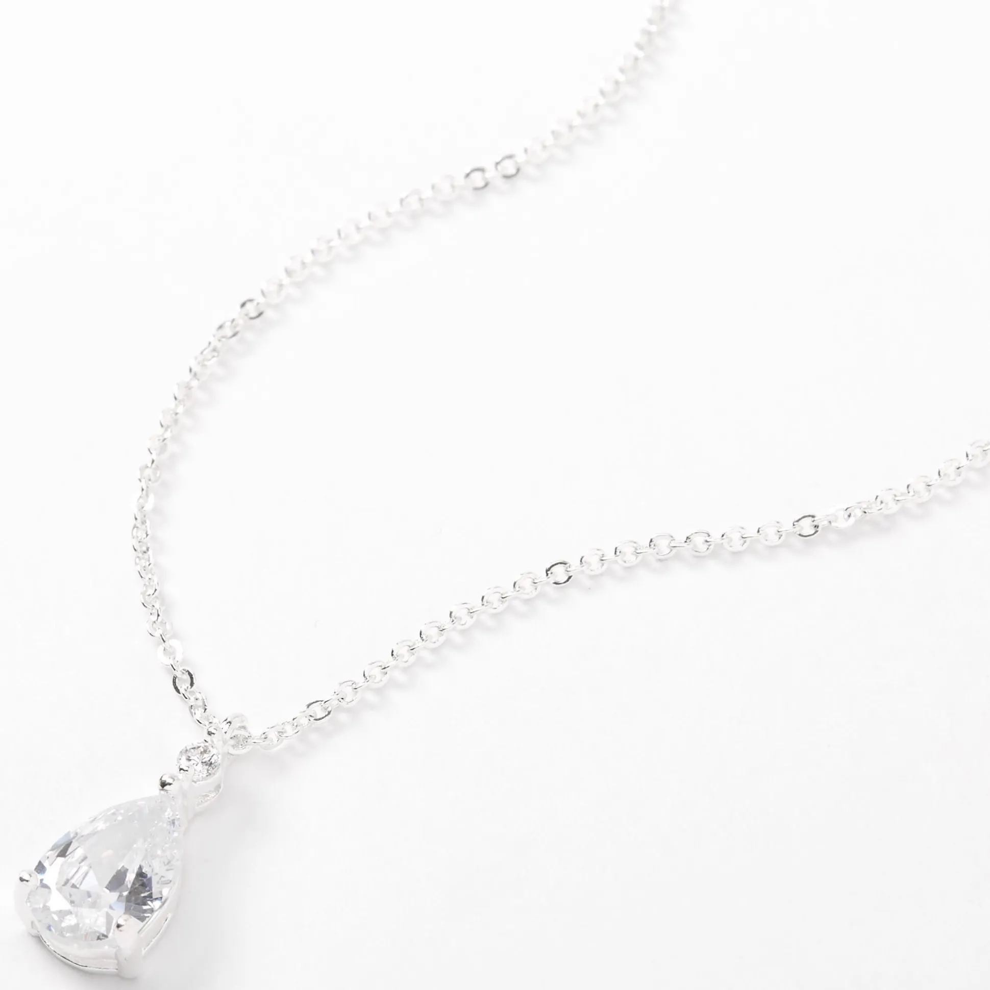 Ajoute ce collier à pendentif goutte tout simple orné de strass à n’importe quel look pour te donner un petit effet bling bling supplémentaire ! Son fini est couleur argentée et il est agrémenté d’un beau pendentif goutte composé de strass en zircon cubique d’imitation.
