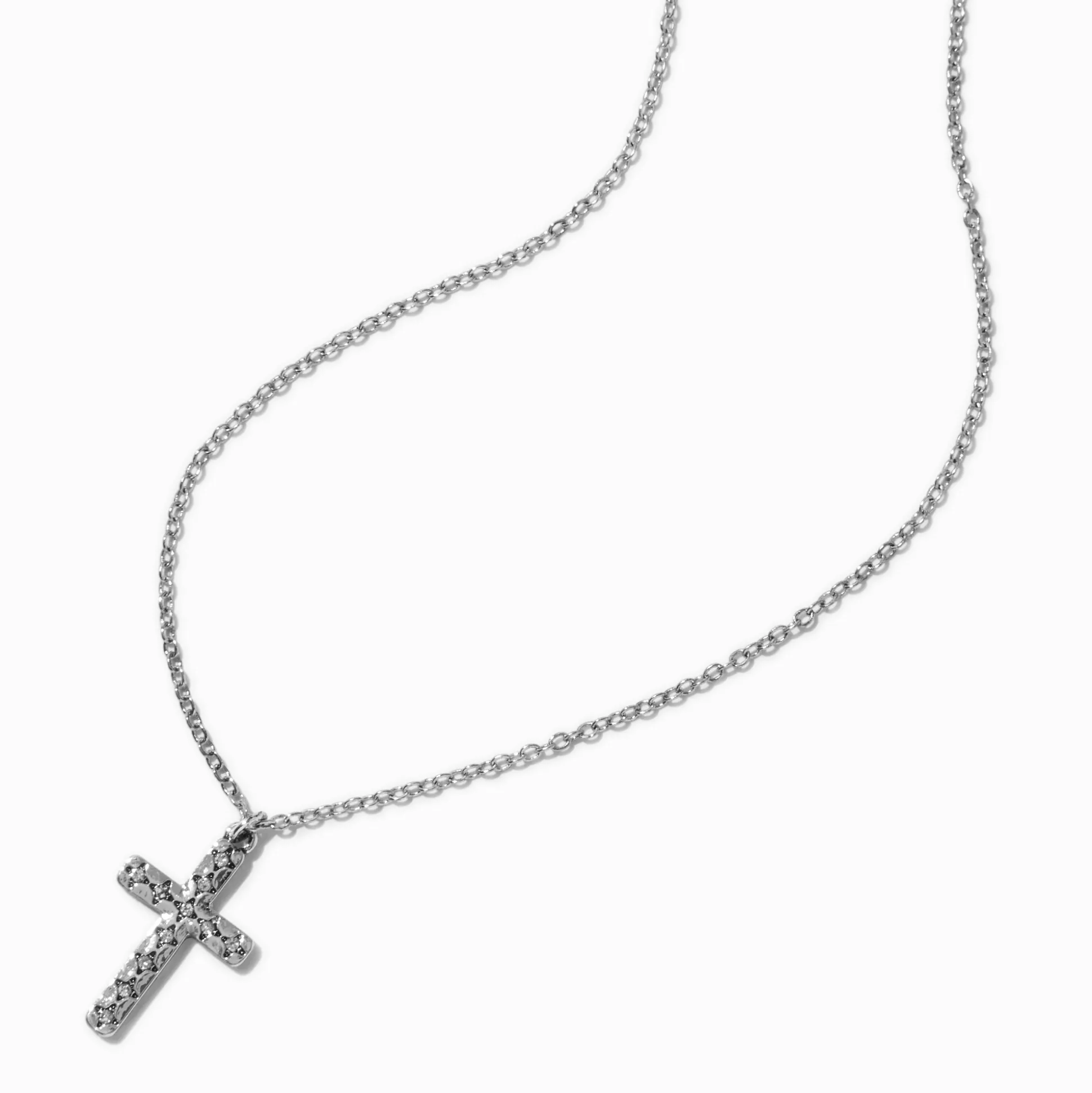 Mets en avant ton côté spirituel en portant ce collier avec son pendentif croix recouvert de strass.