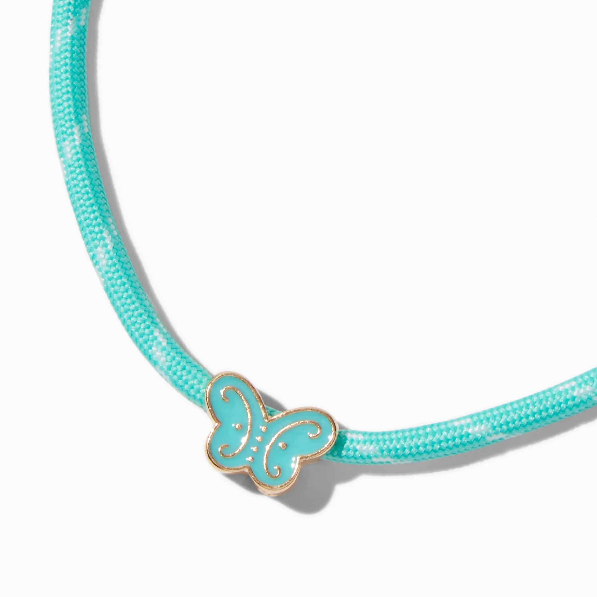 Sois toi et sois au top avec ce collier de corde couleur turquoise. Il est agrémenté d’un pendentif papillon couleur dorée qui ira avec tes tenues préférées.