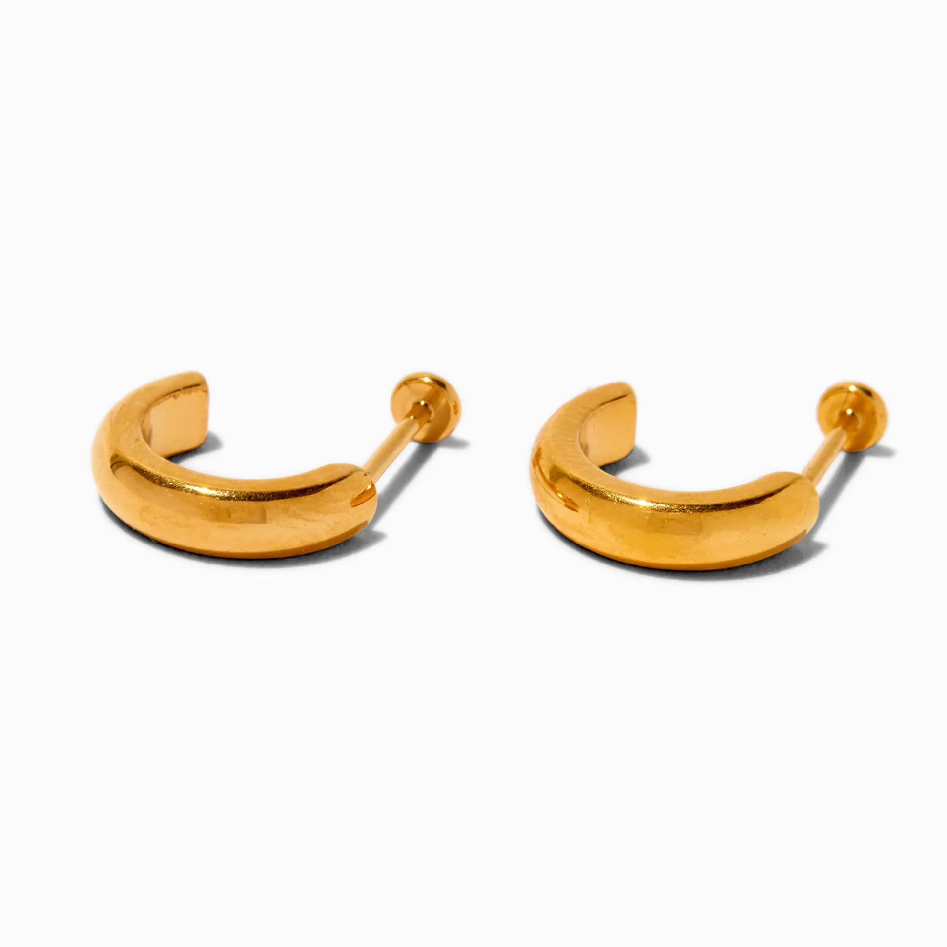 Sois toi et sois au top avec ces créoles couleur dorée. Fabriquées en titane robuste, ces boucles d’oreilles arborent un arrière plat qui est parfait pour un port quotidien.