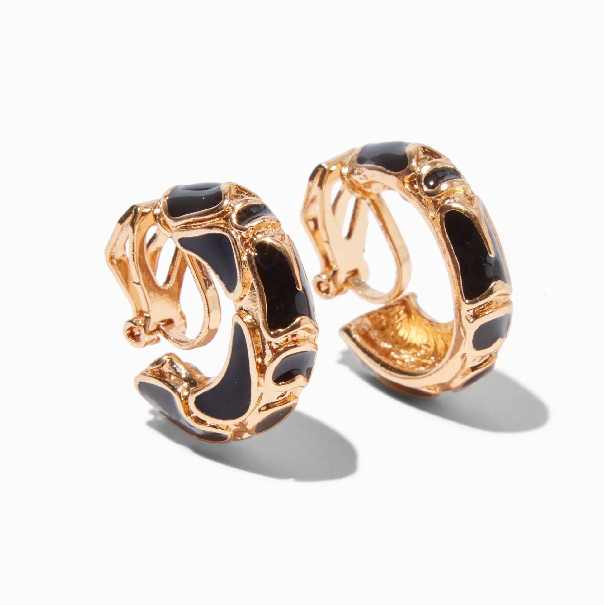 Offre-toi un détail noir émaillé en portant ces créoles couleur dorée. En plus, elles sont à clip, donc pas besoin d’avoir les oreilles percées pour les porter !