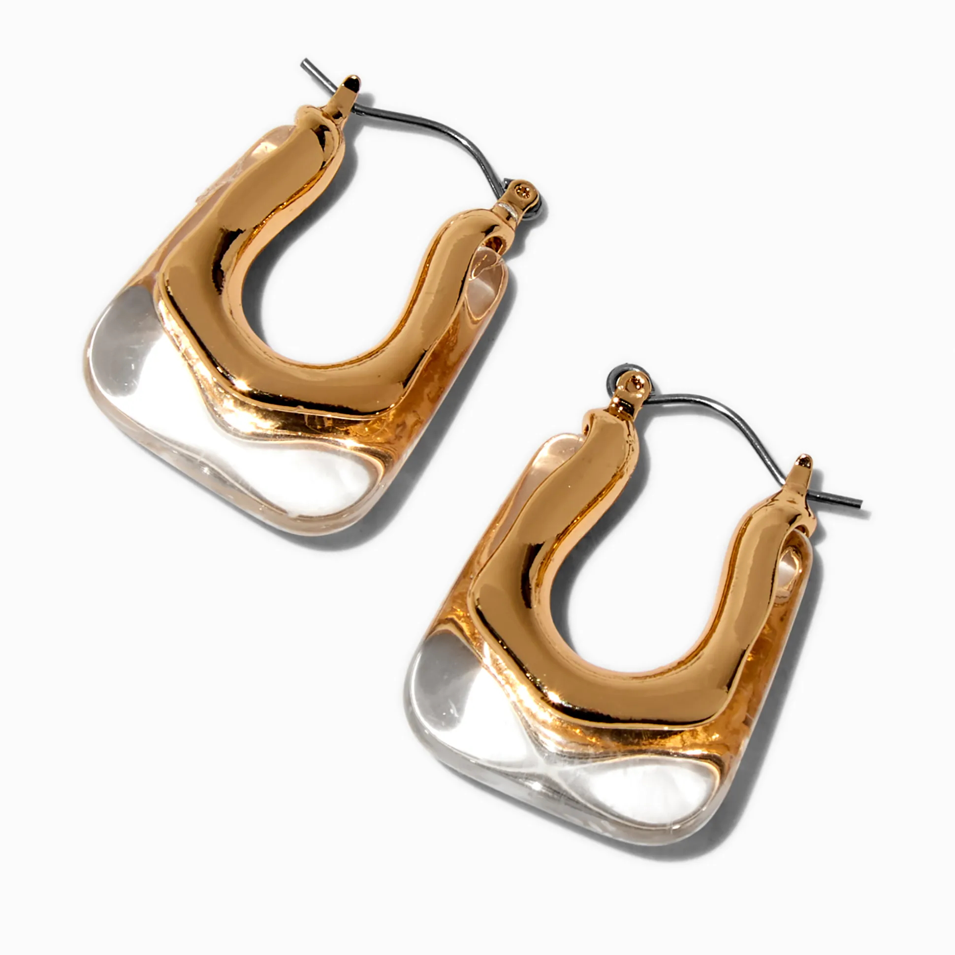 Sois toi et sois au top avec ces créoles couleur dorée. Les boucles d’oreilles équipées de charnière arborent une forme carrée avec un bord en acrylique transparent.