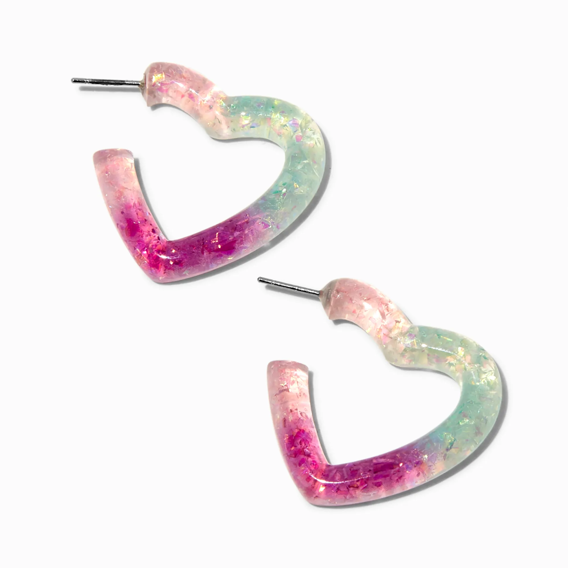 Sois toi et sois au top avec ces boucles d’oreilles. Les designs à tige arrière arborent des boucles en forme de cœur qui sont pleines de paillettes violettes et bleues.