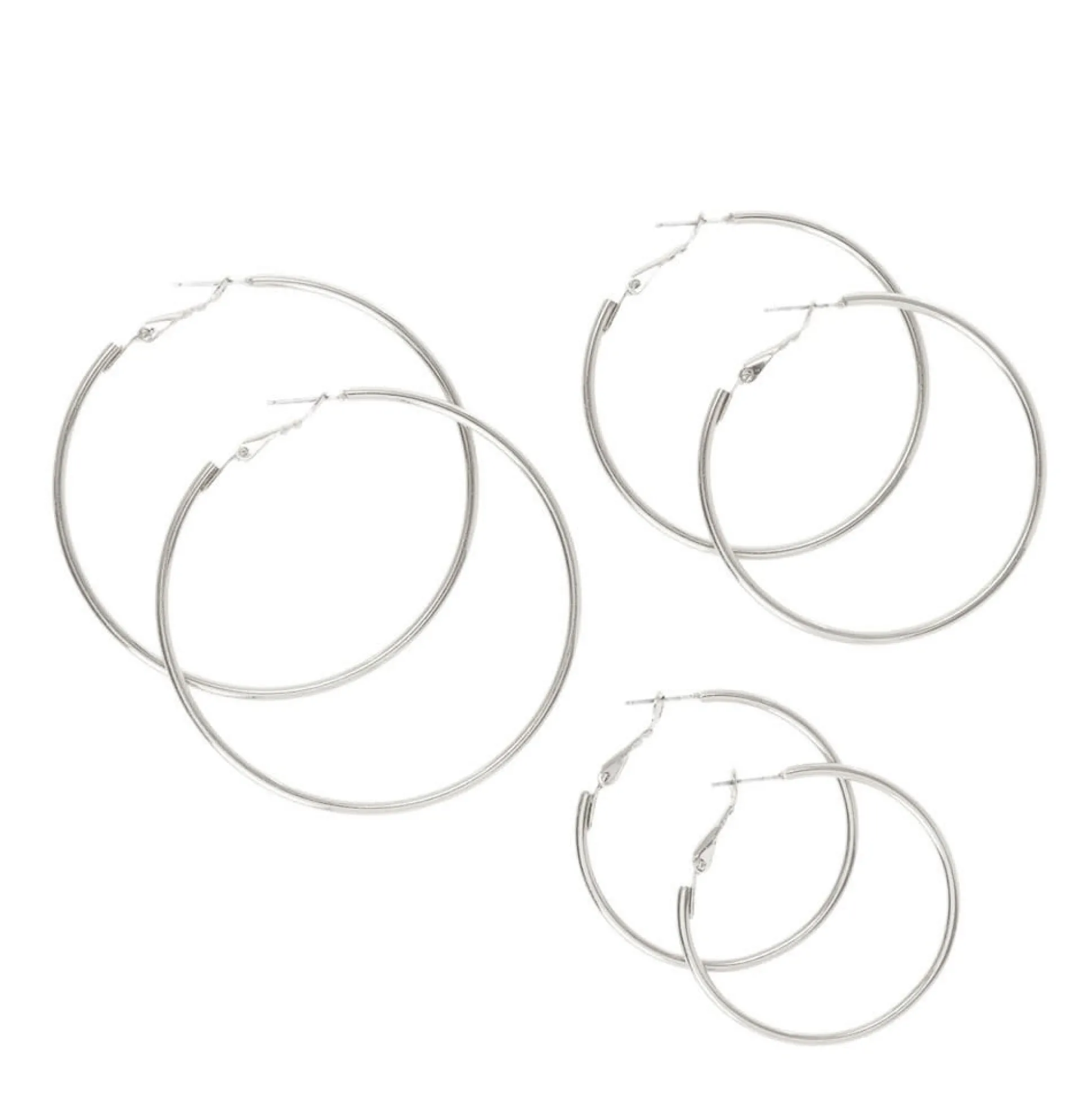 Fais briller ton style encore plus avec cet ensemble de créoles couleur argentés. Tailles : 40 mm, 50 mm et 60 mm