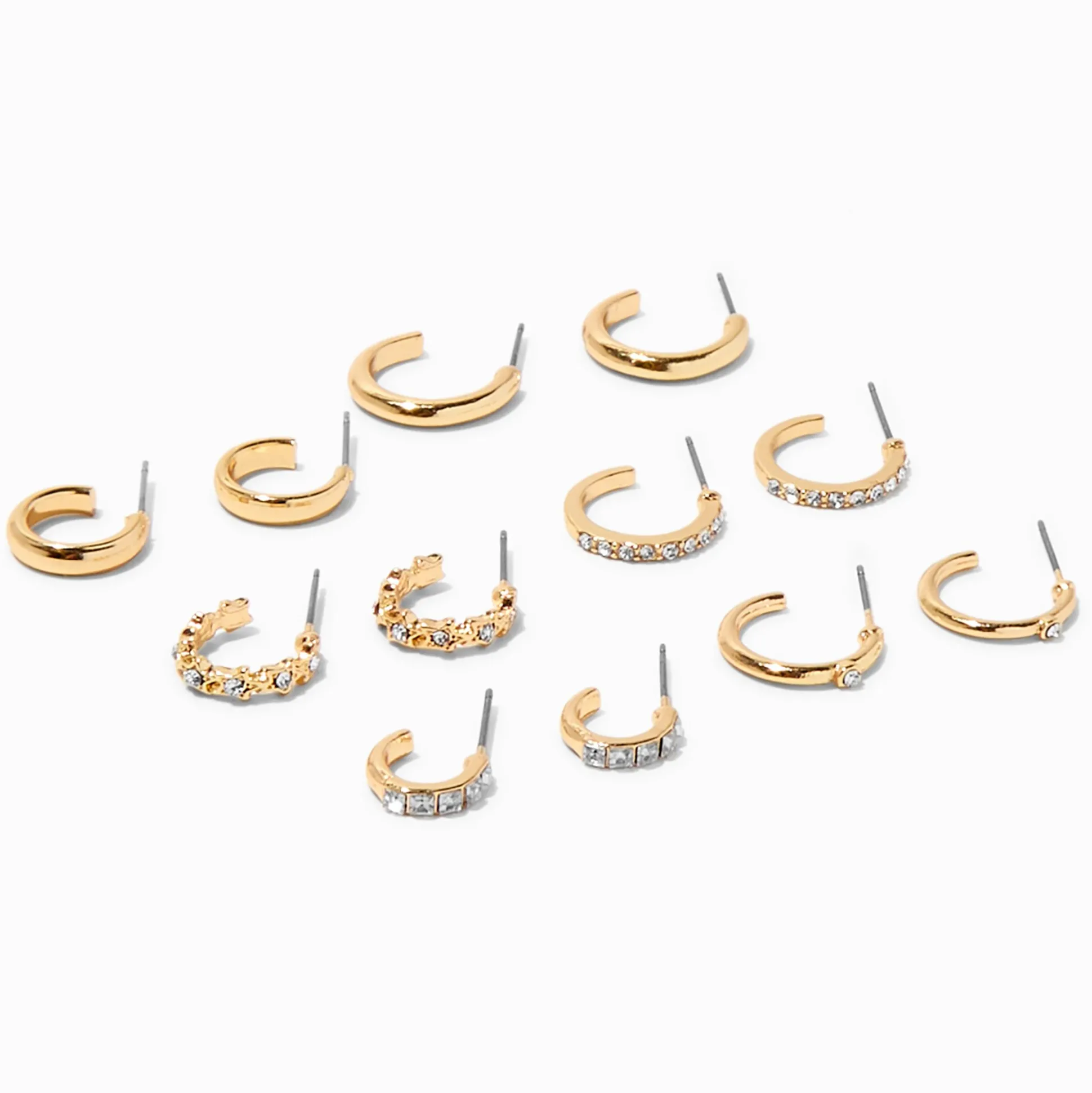 Aie toujours des boucles d’oreilles parfaites avec ce lot de six paires. La collection de créoles couleur argentée arbore deux créoles sans décoration de tailles différentes, et quatre paires décorées de strass pour scintiller encore plus.