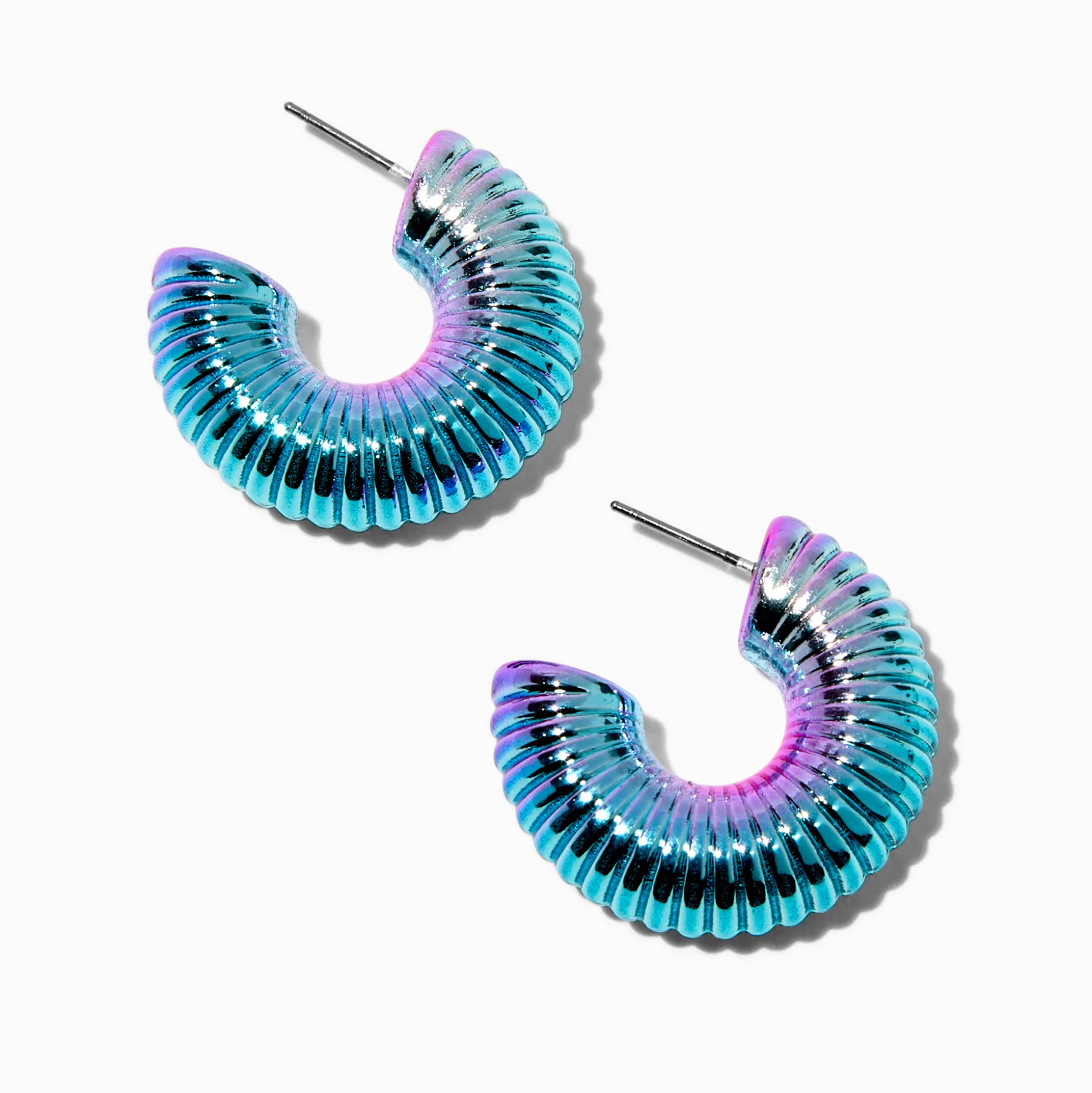 Sois aussi funky que possible en portant ces créoles. Les designs en spirale sont recouverts d’un fini anodisé bleu.