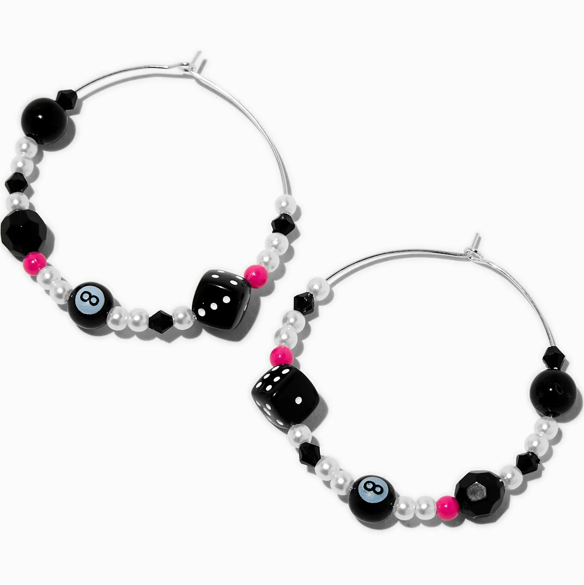 Sois resplendissante avec ces boucles d’oreilles perlées. Les créoles sont ornées de perles d’imitation, de dés noirs, de boules numéro 8, et bien plus encore.
