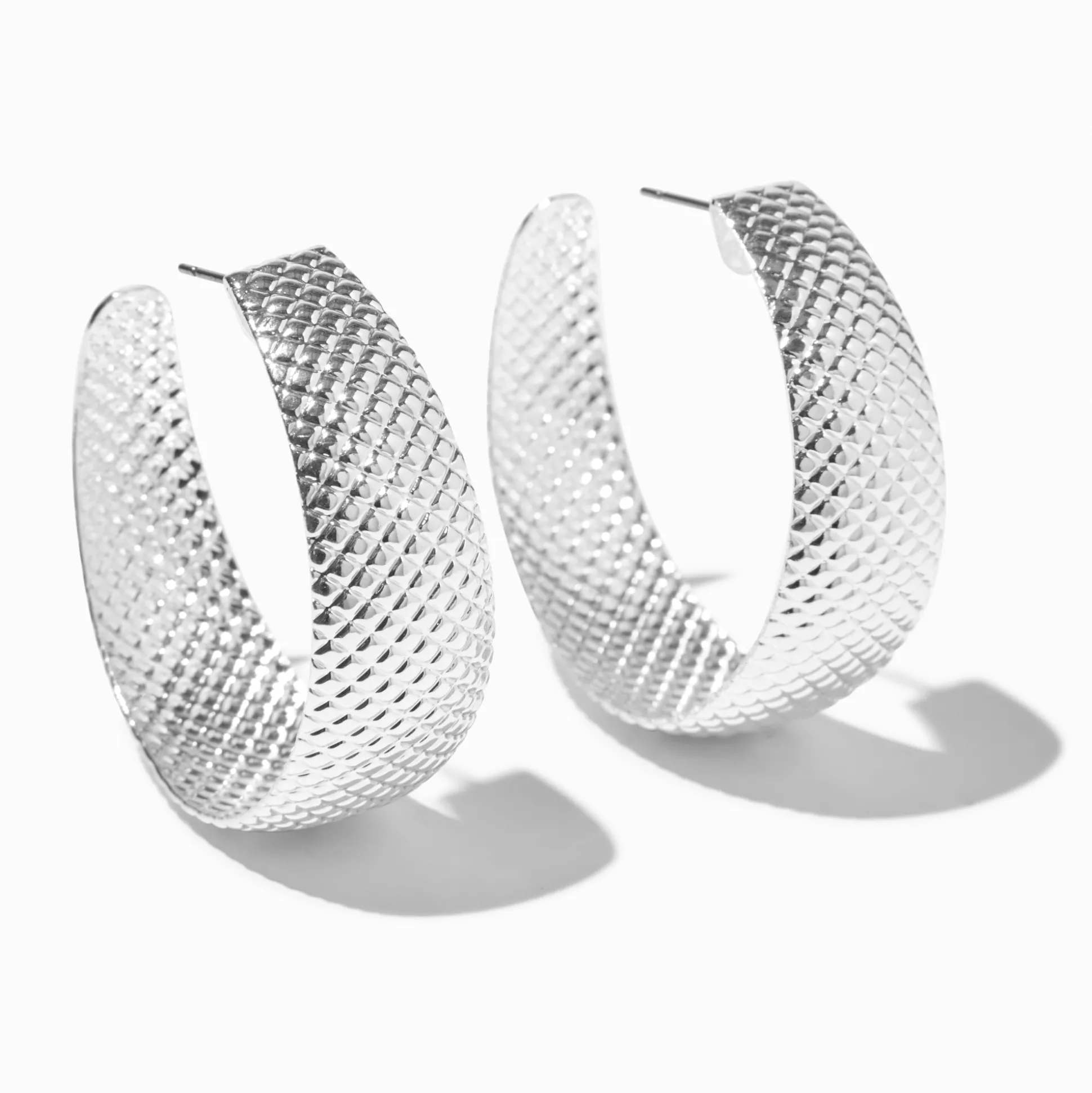 Adopte une version revisitée des créoles classiques avec ces petites merveilles texturées. Ces boucles d’oreilles couleur argentée, dotées d’une fermeture à tige arrière, présentent un design texturé.
