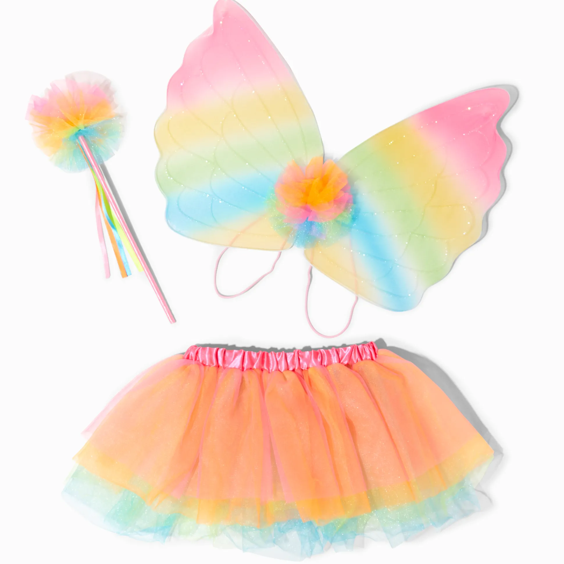 Transformez votre petite fille en un superbe papillon fluo aux couleurs de l’arc-en-ciel ! Ce costume comprend 3 articles : un tutu, des ailes, et une baguette magique super fun !