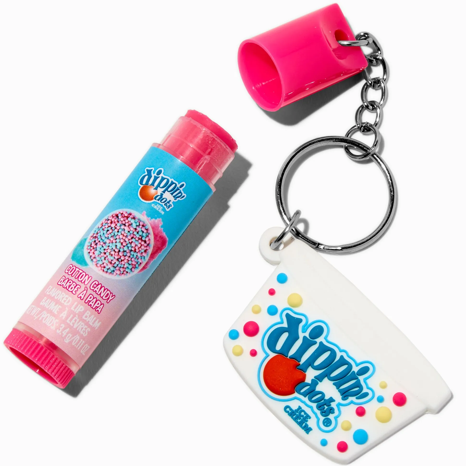 Dippin’ Dots® lip balm keyring. It has cotton candy-flavoured balm and attached keyring, so you can always keep it handy with your keys or hanging from your purse or backpack.