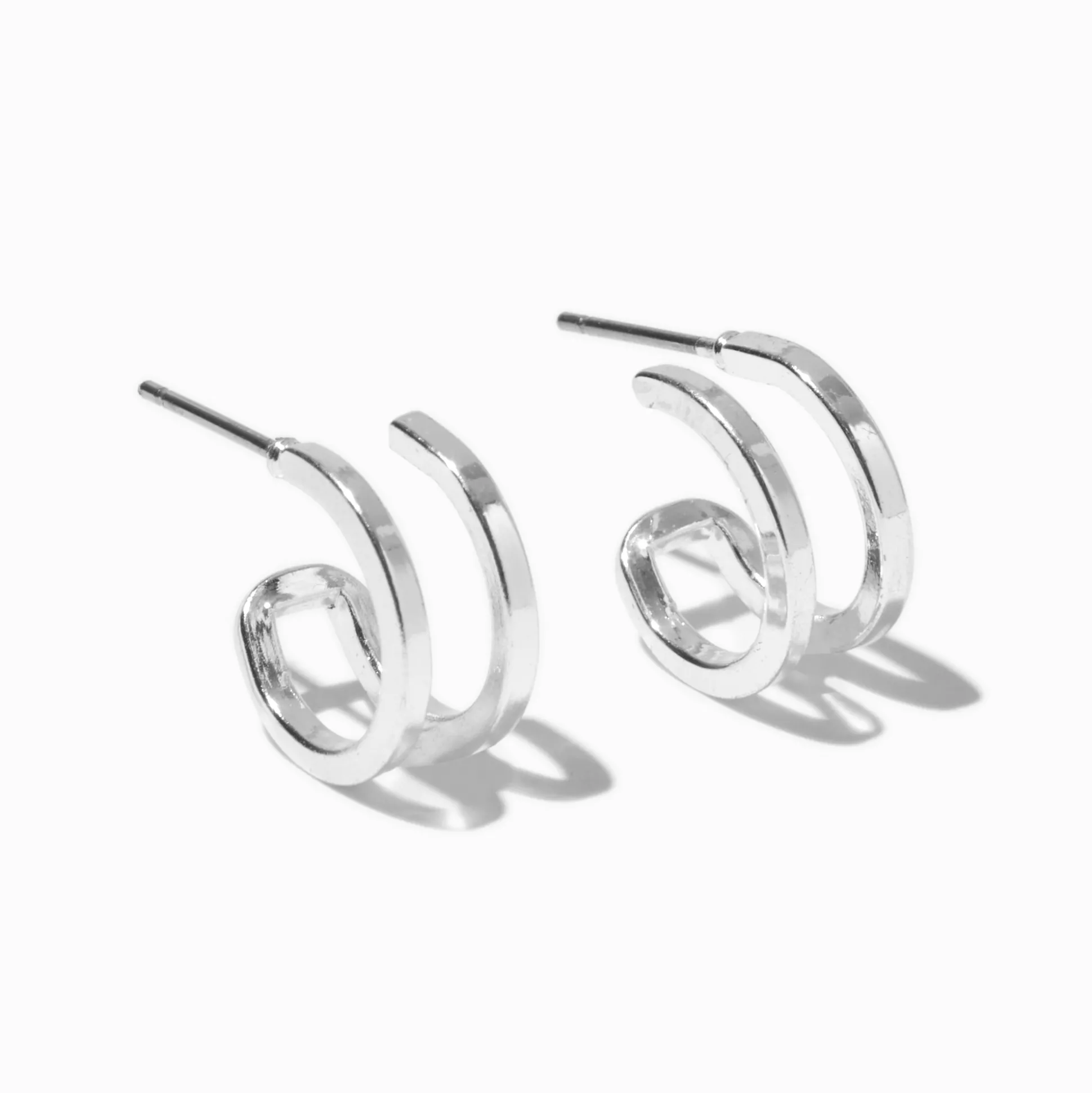 Ce design double créole fera croire à tout le monde que tu portes un double piercing. Ces boucles d’oreilles couleur argentée arborent des tiges arrière et un design double créole.