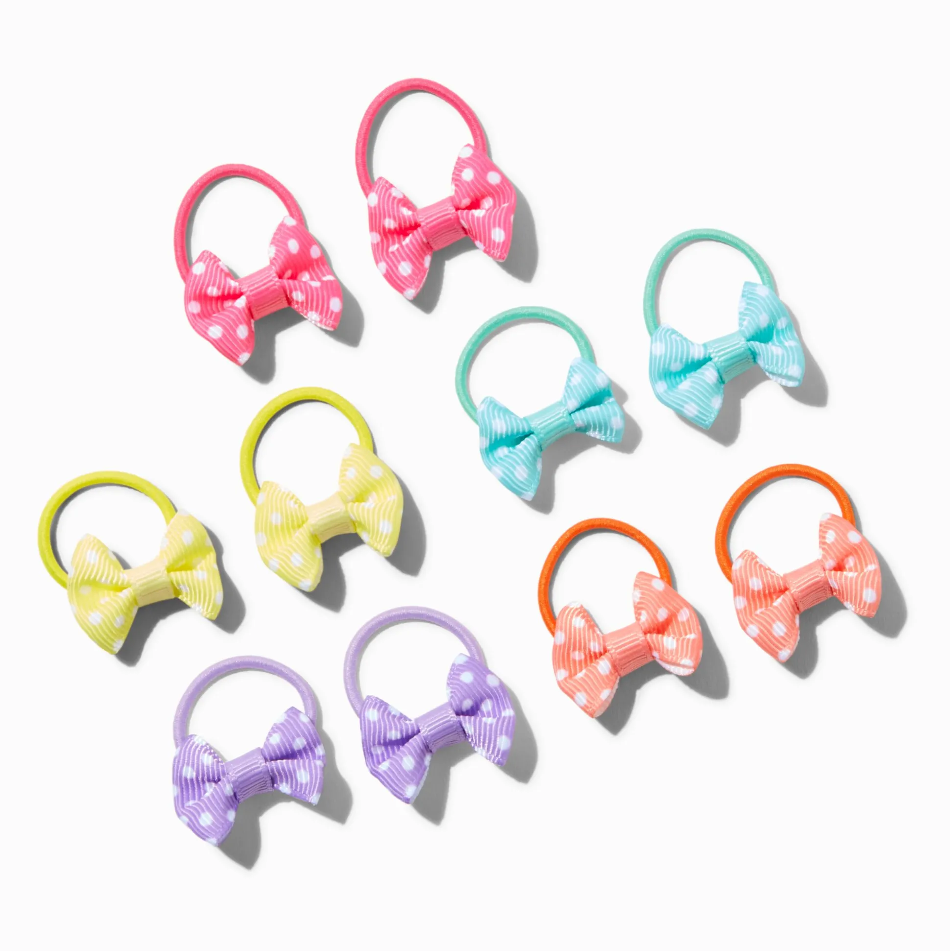 Attache tes cheveux avec ces élastiques élégants. Ce lot de 10 arbore des nœuds en gros-grain ornés d’un beau motif à pois. En glissant ce lot super fun dans des sacs à dos, sacs à main, ou sacs de sport, vous avez toujours l’option d’attacher ses cheveux avec un nœud.
