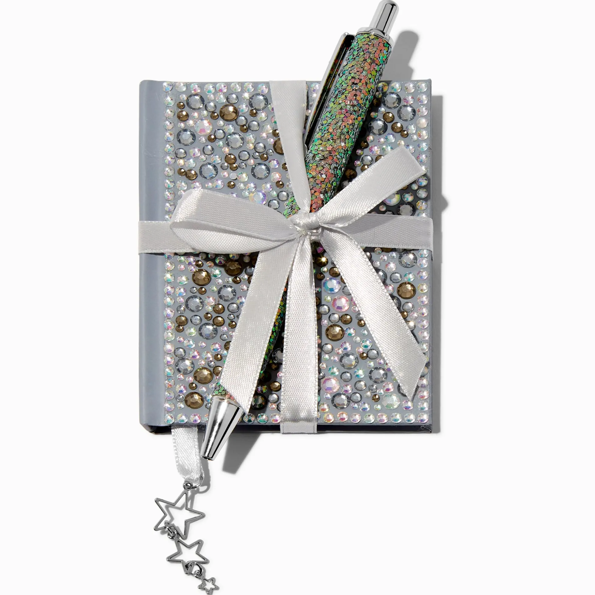 Ensemble cadeau stylo et mini carnet étoile bling-bling couleur argentée