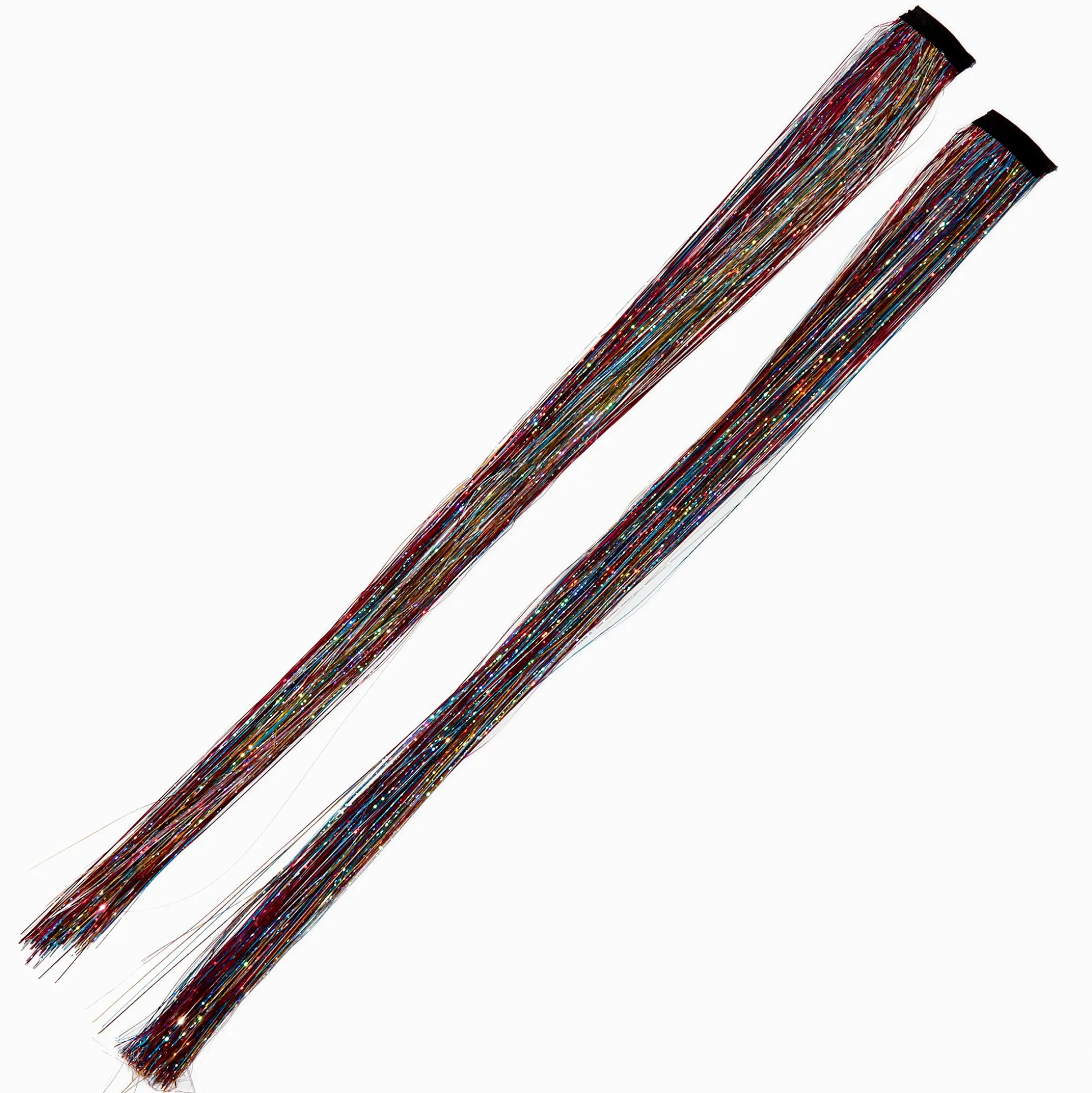 Prends la tendance des guirlandes en marche ! Tu peux changer de look en un instant avec ces barrettes amusantes en fausse guirlande dans un arc-en-ciel de couleurs étincelantes. Lot de deux extensions avec barrettes clic clac intégrées pour un placement facile dans tes cheveux, dans une queue de cheval, une tresse, et plus encore.